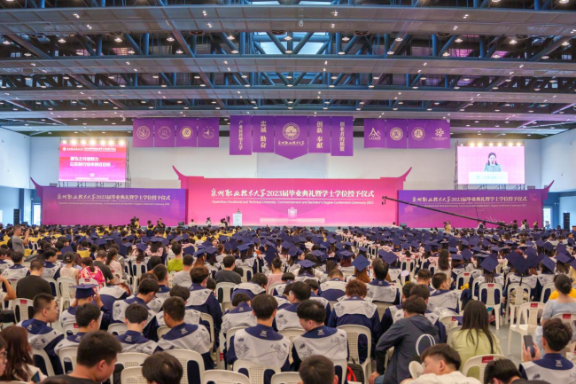 中国网福建讯 盛夏时节,又到凤凰花开季!7月8日,泉州职业技术大学隆重举行2023届毕业典礼暨学士学位授予仪式。值得关注的是,今年该校迎来首届本科毕业生,他们亦是全国首批职业本科毕业生,共有1928名同学获得学士学位,打破了职业教育专科层次的“天花板”,标志着福建省职业教育踏上了一个新台阶。毕业典礼暨学士学位授予仪式现场。泉州职业技术大学 供图“科技进步、产业升级和技术变迁,衍生了社会对高层次技术技能人才...