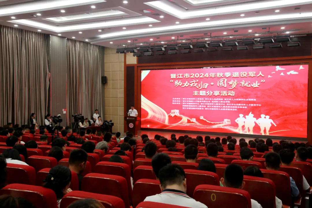 为营造退役军人光荣返乡的浓厚氛围,精准匹配用人单位与退役军人需求,多措并举促进退役军人和随军家属有效就业创业,9月4日,晋江市退役军人事务局联合晋江市人民武装部、市人力资源和社会保障局共同举办晋江市2024年秋季退役军人“助力戎归•圆梦就业”主题分享活动暨退役军人和随军家属专场招聘会。凝聚多方能量专题分享做耀眼“明灯”上午八时三十分,主题分享活动在奏唱中华人民共和国国歌中拉开帷幕,全体庄严肃立,齐声...