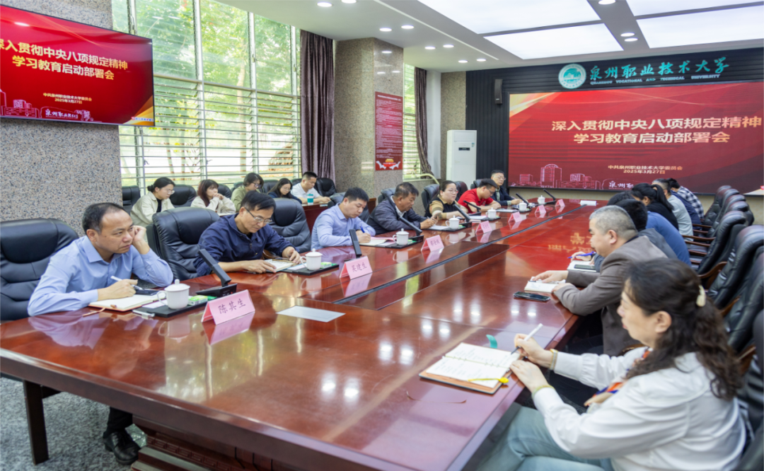 自深入贯彻中央八项规定精神学习教育开展以来,泉州职业技术大学党委不折不扣落实党中央部署要求,把握学习教育重点和目标任务,聚焦“学查改”一体推进,以“四个坚持”为抓手,推动学习教育有质量、有特色、有实效,为学校高质量发展提供坚强有力保障。坚持一体推进,强化组织保障。学校党委高度重视,将学习教育作为重要政治任务。迅速成立工作专班,制定实施方案,召开部署会,在全校全面动员。建立“党委—党总支—党支部...
