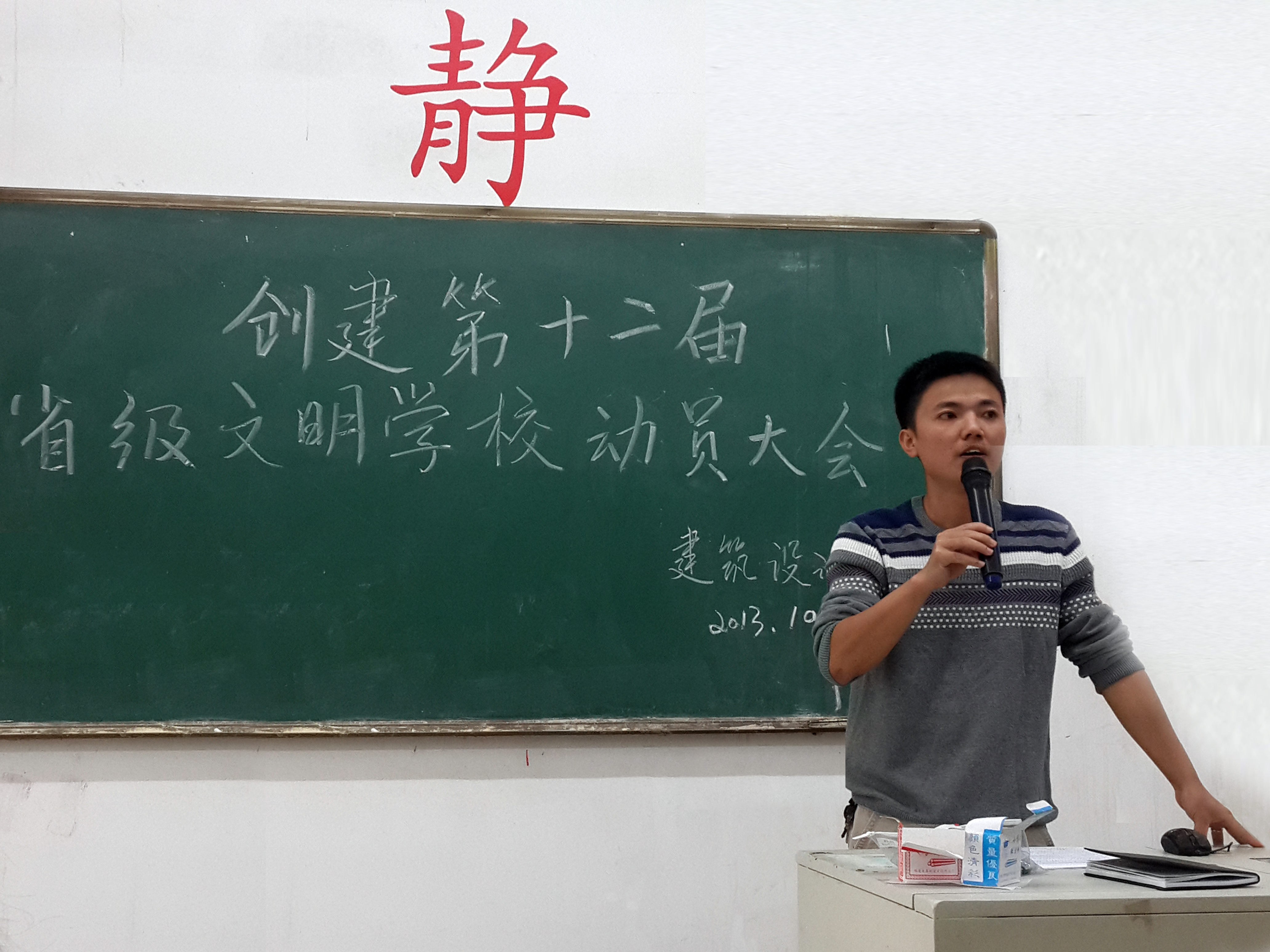 为进一步深入开展我系各项文明学校创建工作,以崭新的精神面貌迎接省专家组评估工作,着力抓好校园卫生整治工作,建筑设计系于 10月 29日 在056教室召开迎接省第十二届文明学校评估动员大会。出席此次...
