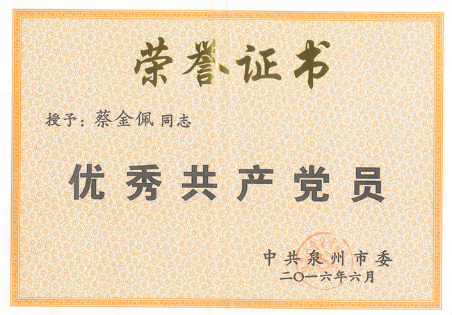 • 我校蔡金佩同志被评为泉州市“优秀共产党员”