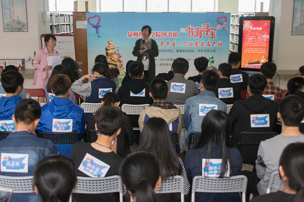 郑春梅老师动员大家 同学们正在查找书籍 大家相互配合 获奖的同学们 4 月 12 日下午,图书馆六楼活动大厅迎来了一场别开生面的“书海寻宝”搜书大赛。共有“施工队”、“恩...