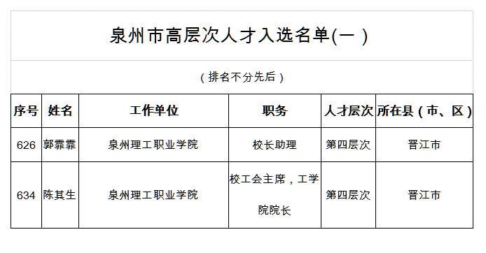 近日,泉州市人社局公布了泉州市高层次人才入选名单(第一批),我校郭霏霏老师、陈其生老师入选,被审核认定为泉州高层次人才(第四层次)。 2017年以来,为深入实施创新驱动发展战略,全面落实泉州市“十三...