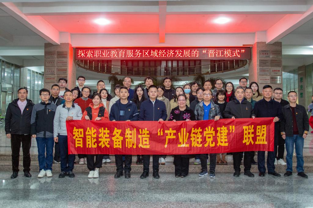 为推动主题教育走深走实,12月26日下午,晋江市科技局全体干部、退休党员干部,市智能装备协会和智能装备制造产业链党建联盟企业党员代表等到晋江市内坑镇开展智能装备制造产业链党建联盟主题党日活动。先后参观中共泉州中心县委历史纪念馆、泉州职业技术大学,并在泉州职业技术大学召开政企学研对接合作座谈会。在我校,校长吴滨如陪同大家参观校史馆、党建馆和国科数字产业学院,为大家介绍办学历史、办学理念、办学特色、跟...