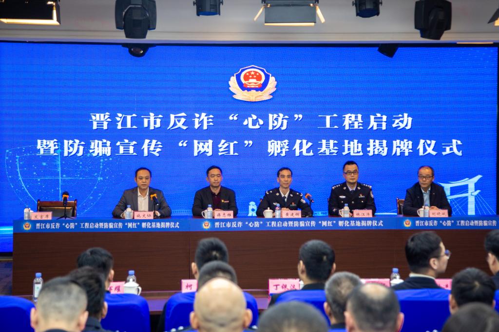 12月9日上午,晋江市反诈“心防”工程启动暨防骗宣传“网红”孵化基地揭牌仪式在泉州职业技术大学举行。泉州市公安局副局长、晋江市副市长、晋江市公安局局长黄建辉,泉州市公安局公共关系处处长林江涛,晋江职业中专学校校长刘晓斌,晋江市委政法委副书记施文协,晋江市检察院副检察长许新报,晋江市司法局副局长柯涌,晋江市公安局副局长洪进南、蔡辉耀,晋江市法院刑二庭庭长杨明护,以及我校党委书记傅志雄、校务顾问吴建生...