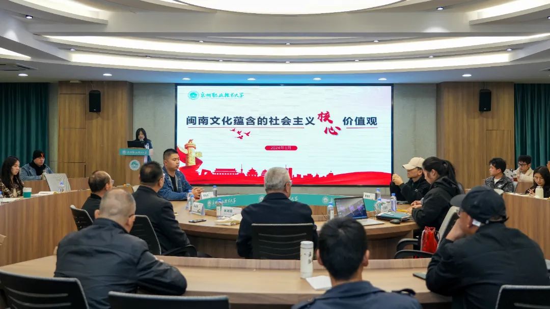 近日,我校邀请鲤城区社科联主席、国家语委科研机构丝路语言文化研究中心特聘研究员、泉州市志愿服务工作专家库专家吴湘霖入校开展《闽南文化蕴含的社会主义核心价值观》专题讲座。校务顾问、马克思主义学院院长来永宝,学工处、各书院书记、全体马院老师、全体辅导员参加活动。会议由学生工作处副处长朱冰梅主持。闽南文化中,不乏鲜明的爱国爱乡教育素材,可以引导和帮助当代大学生树立正确的人生观、价值观、世界观。吴主席...
