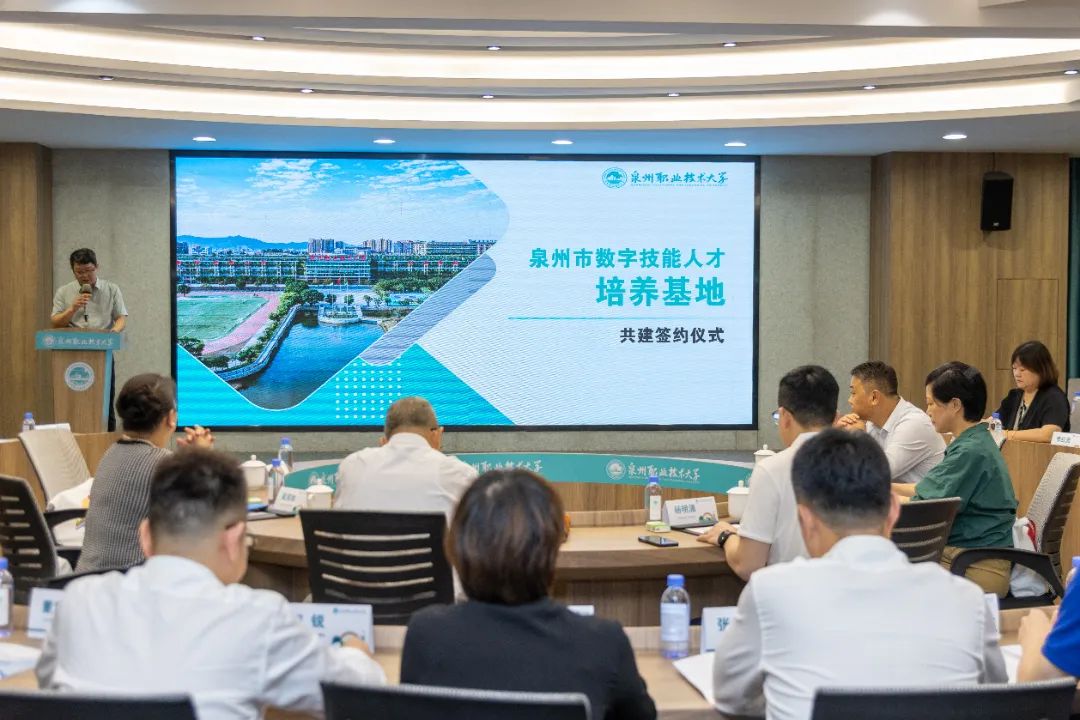 5月7日,泉州市数字技能人才培养基地共建签约仪式在泉州职业技术大学举办。出席签约仪式的领导、嘉宾有泉州市数字泉州建设办公室主任施国宾,泉州市人力资源和社会保障局副局长杨明涌,泉州市数字泉州建设办公室四级调研员张诗琴、科长邓礼靖,泉州市人力资源和社会保障局主任科员郭瑞雯,华为技术有限公司福建交付与服务部部长李伟、华为泉莆业务部总经理张怀庆、培训认证部政府人才培养业务总监李丹,及我校校长吴滨如。仪式...