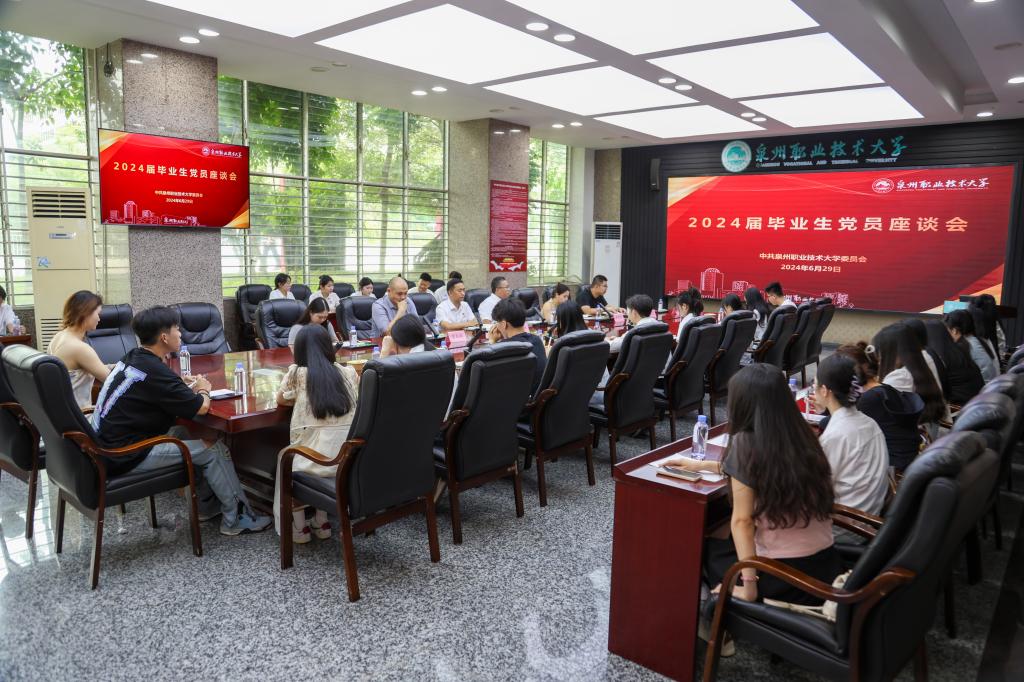 6月29日上午,泉州职业技术大学2024届毕业生党员代表座谈会在第一会议室召开。学校党委书记傅志雄,党委职能部门负责人、各书院党总支书记以及53名毕业生党员代表参加座谈。座谈会上,毕业生党员们讲述了入党的心路历程,分享了在校学习工作经历、各自实习期间收获成长以及考公、考研等方面的经验,畅谈对未来发展的思考规划,表达了对母校精心栽培的感恩、对大学生活的怀念、对母校越办越好的信心和祝福。大家表示会在各自职业...