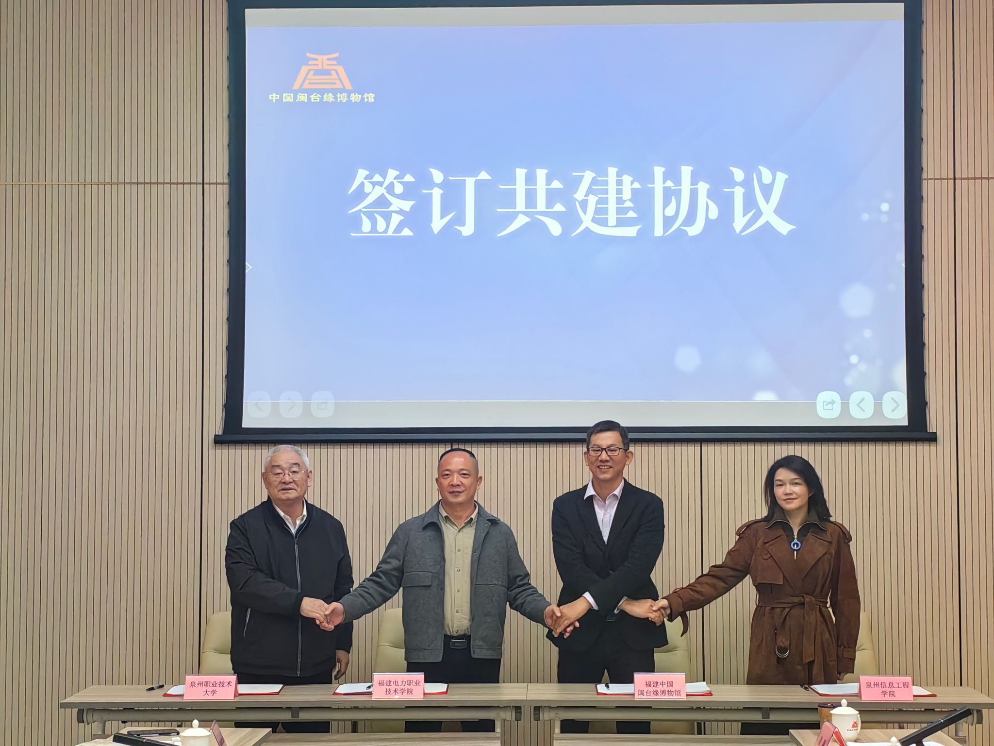 12月27日,泉州职业技术大学与中国闽台缘博物馆举行馆校合作签约仪式,双方将共同推动产教融合与育人平台拓展。我校校务顾问来永宝、艺术传媒学院书记涂永坚及相关专业教师出席活动。签约前,来永宝一行参观博物馆,深入感受闽台历史文化渊源。座谈会上,来永宝介绍学校办学情况,并提出四大合作方向:一是整合博物馆资源,深化课程思政建设;二是联合开发地方特色文化课程;三是拓展书院服务与博物馆联动;四是加强艺术鉴赏领...