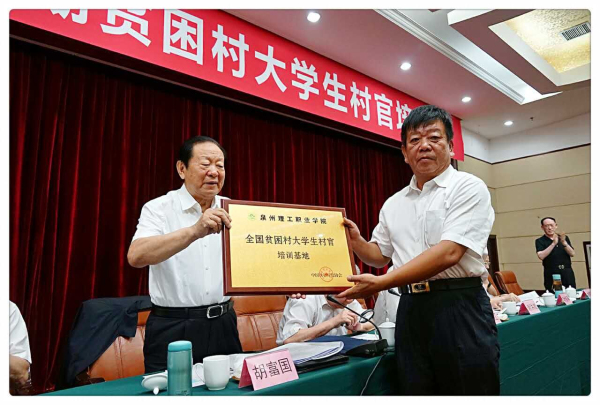 5月30日,由中组部与中国扶贫开发协会举办今年第二期大学生村官培训班在宁德开班,我校董事长吴金营和校党委书记林其天应邀出席会议,肯定我校为扶贫工作所做的贡献,会长胡富国(原山西省委书记,煤炭部长)特向我校颁发了全国贫困村大学生村官培训基地牌匾。