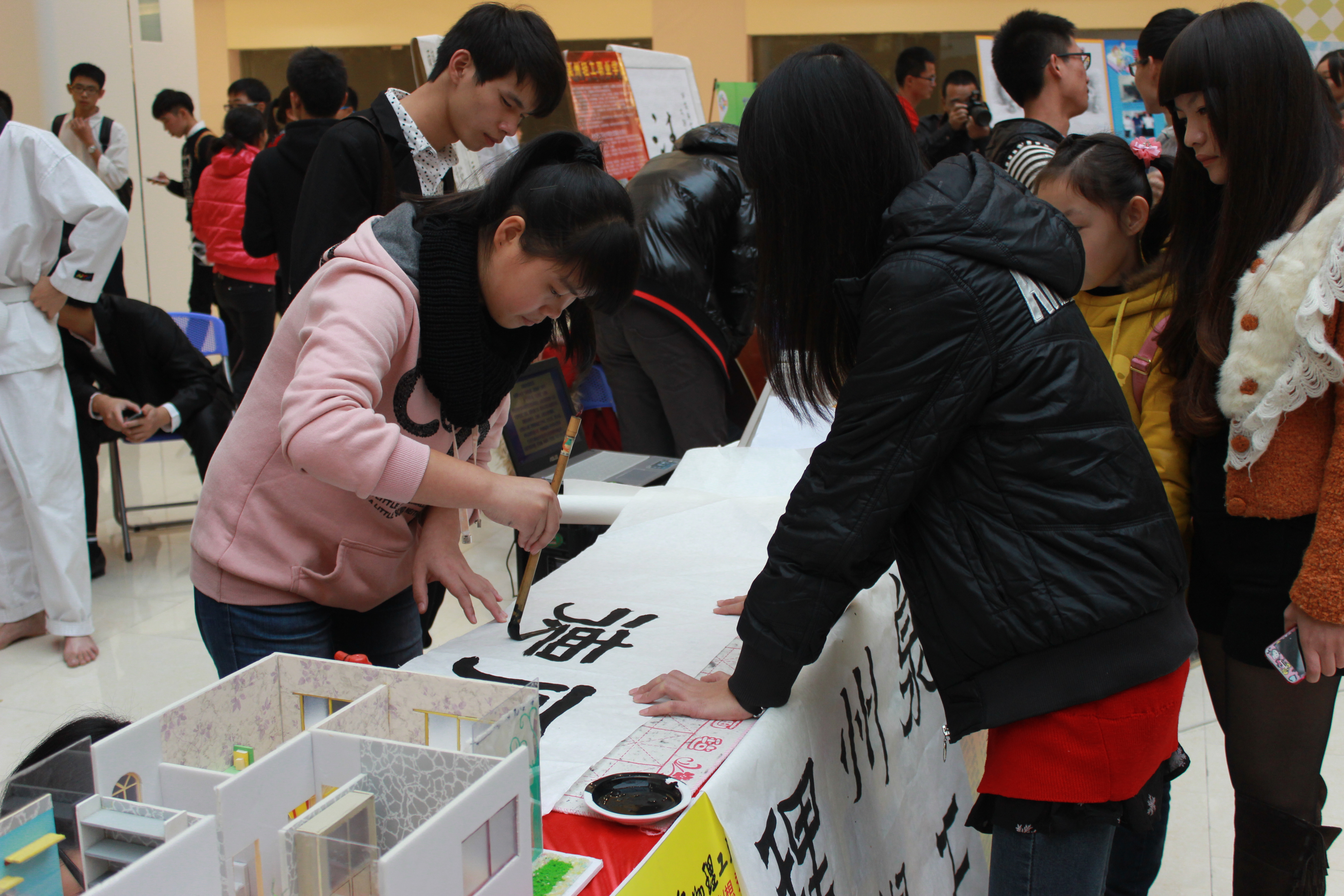 活动期间,晋江市各个中学、高校社团在各自展区展示自己学校风采的同时,还在舞台上进行特色节目表演。我校跆拳道协会、国标舞协会、吉他协会作为社团代表上台表演,英姿飒爽的跆拳道、优雅唯美的国标舞、激情澎湃的吉他弹唱,引来现场观众掌声不断;书画协会林寿梅、陈晓的现场书法及获奖书画展示吸引了很多热爱书画的人士前来参观和拍照留念;拓野文学协的拓野文学报也引来不少观众驻足品读。其间吉他协会在展区内即兴弹唱、轮滑协会在广场上施展轮滑技巧,引来众多观众的围观。