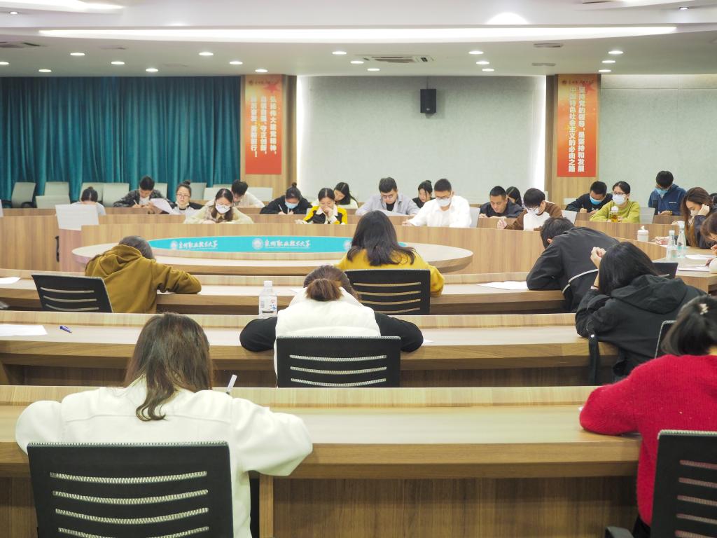 11月28日开展基础知识测试赛,主要考察选手的基础知识储备及其对基本理论的掌握程度。测试采用闭卷答题方式,全体辅导员参与,遴选出10名辅导员进入决赛。
