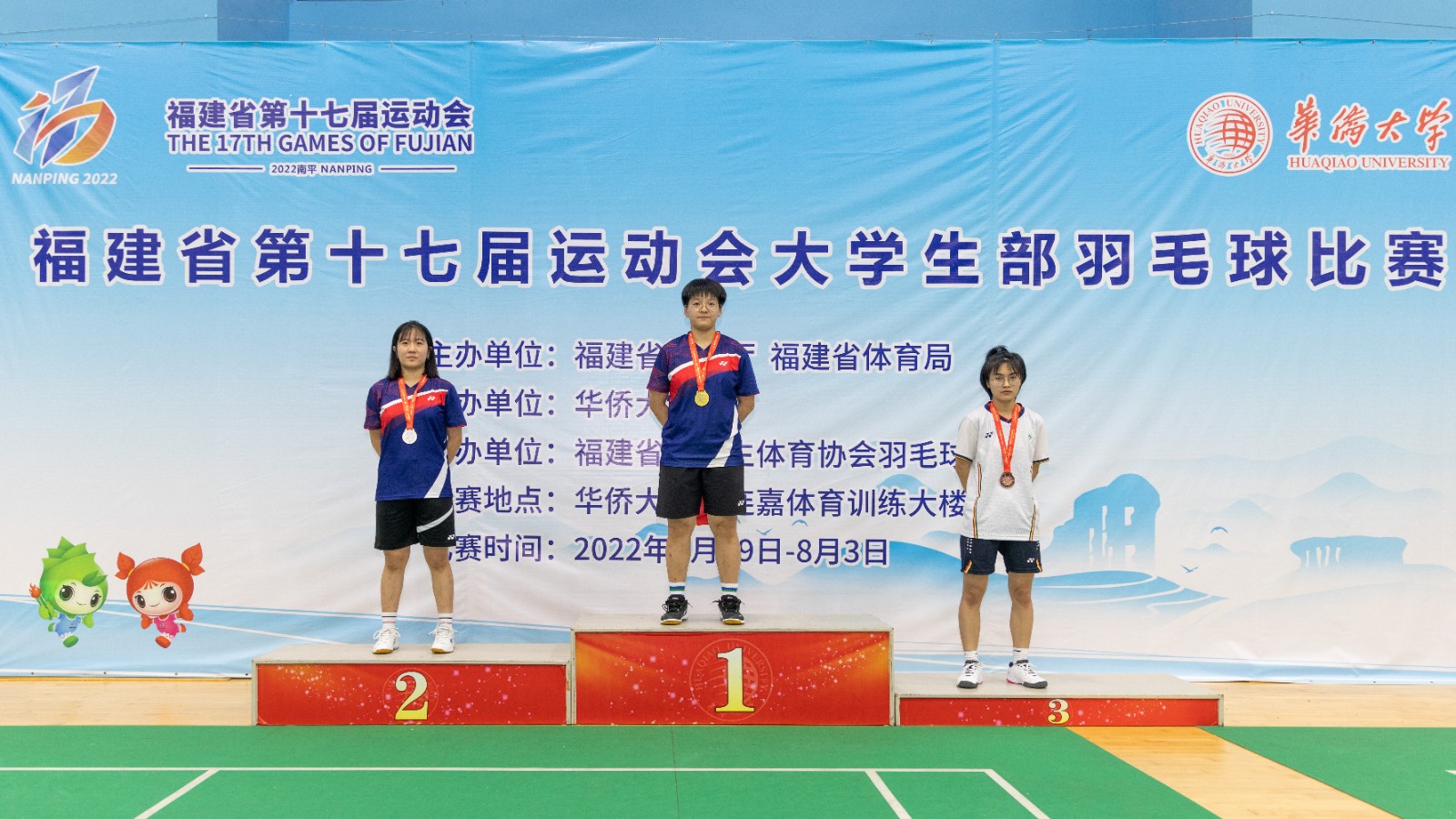 8月3日,福建省第十七届运动会(大学生部)羽毛球比赛,所有赛事在华侨大学结束。我校羽毛球队健儿奋勇拼搏,在赛场上赛出青春风采,取得学校羽毛球比赛历史最佳战绩。