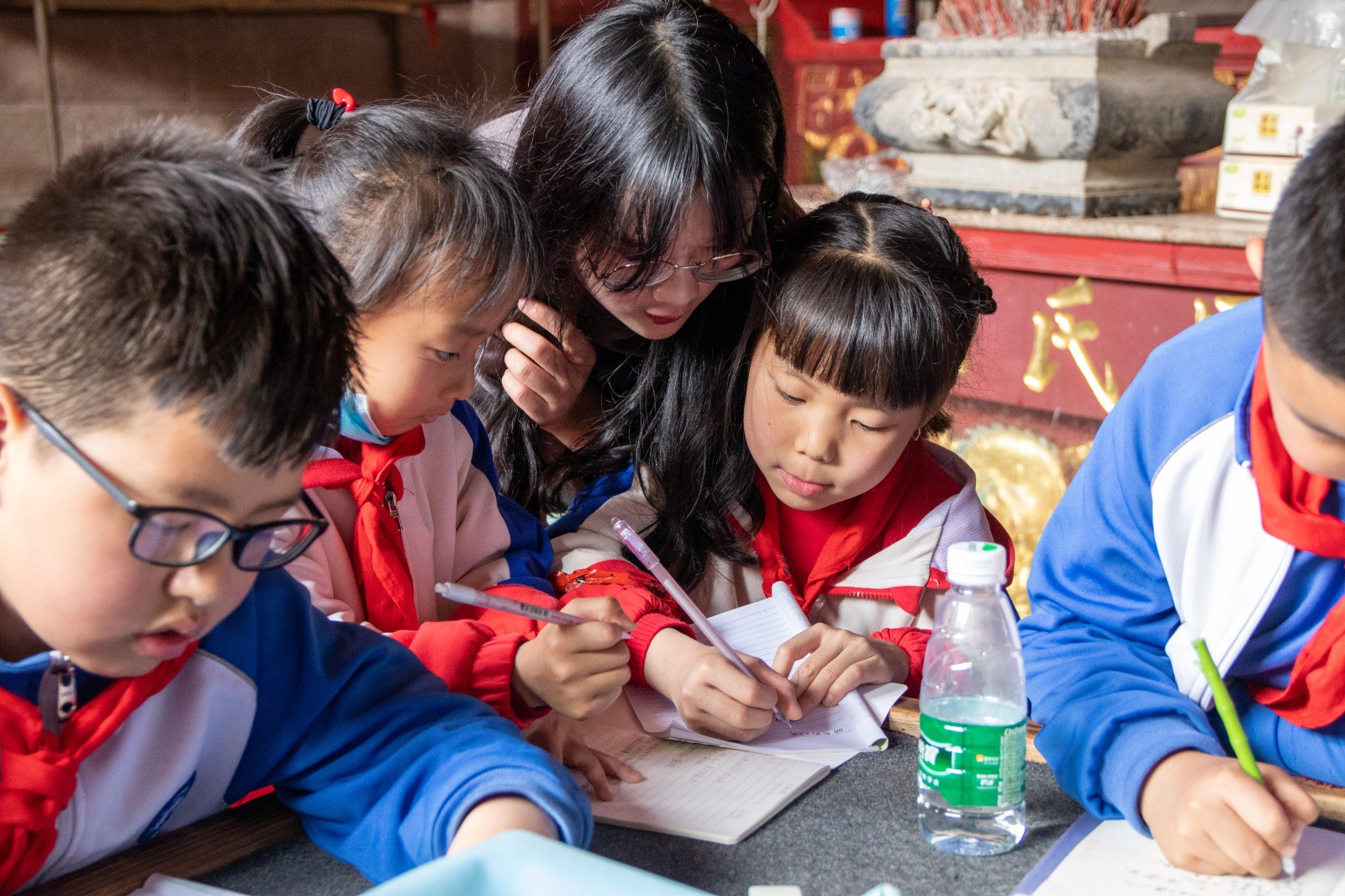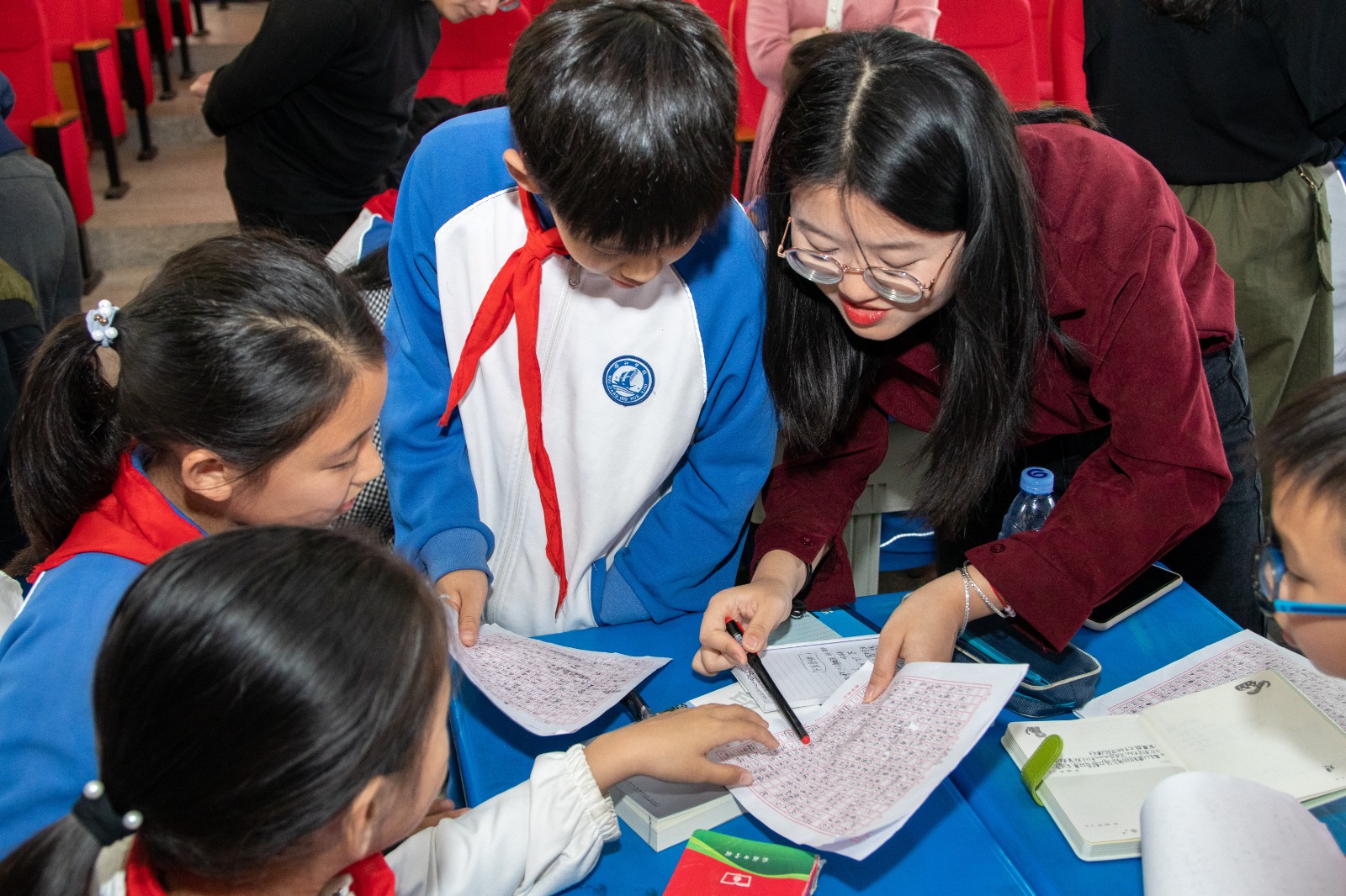 下午,经过一番实地采风的小记者回到教室,将此次研学活动的所见所感用文字表达出来。大记者则从字句的表达、段落的安排、写作的技巧等方面,对小记者进行一对一细致辅导。