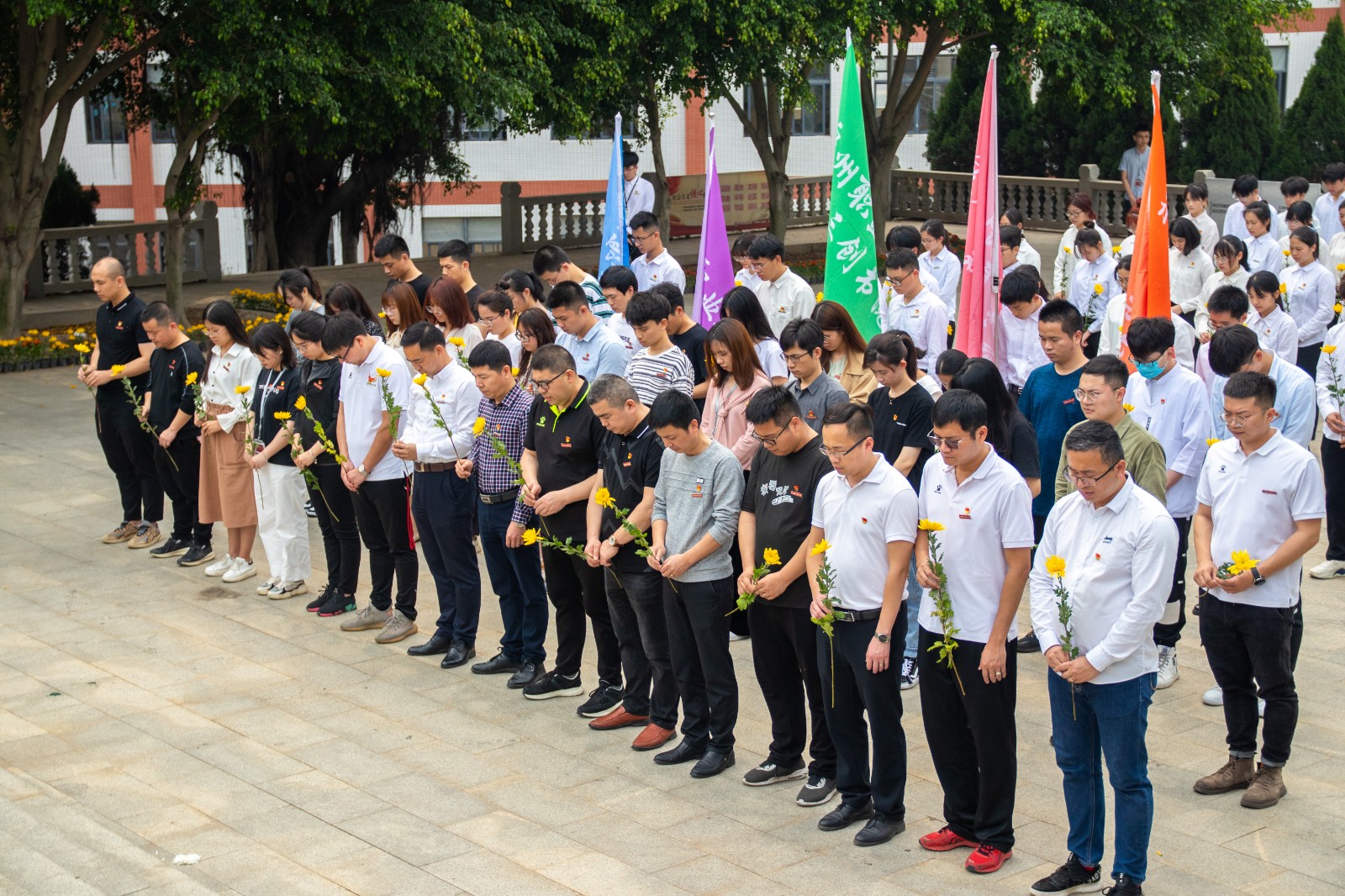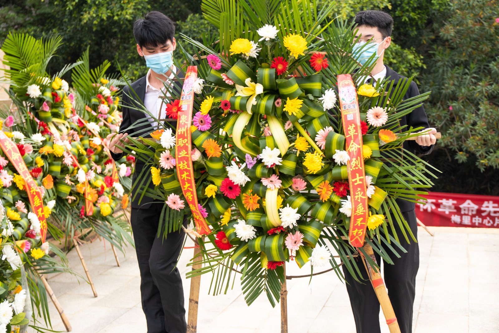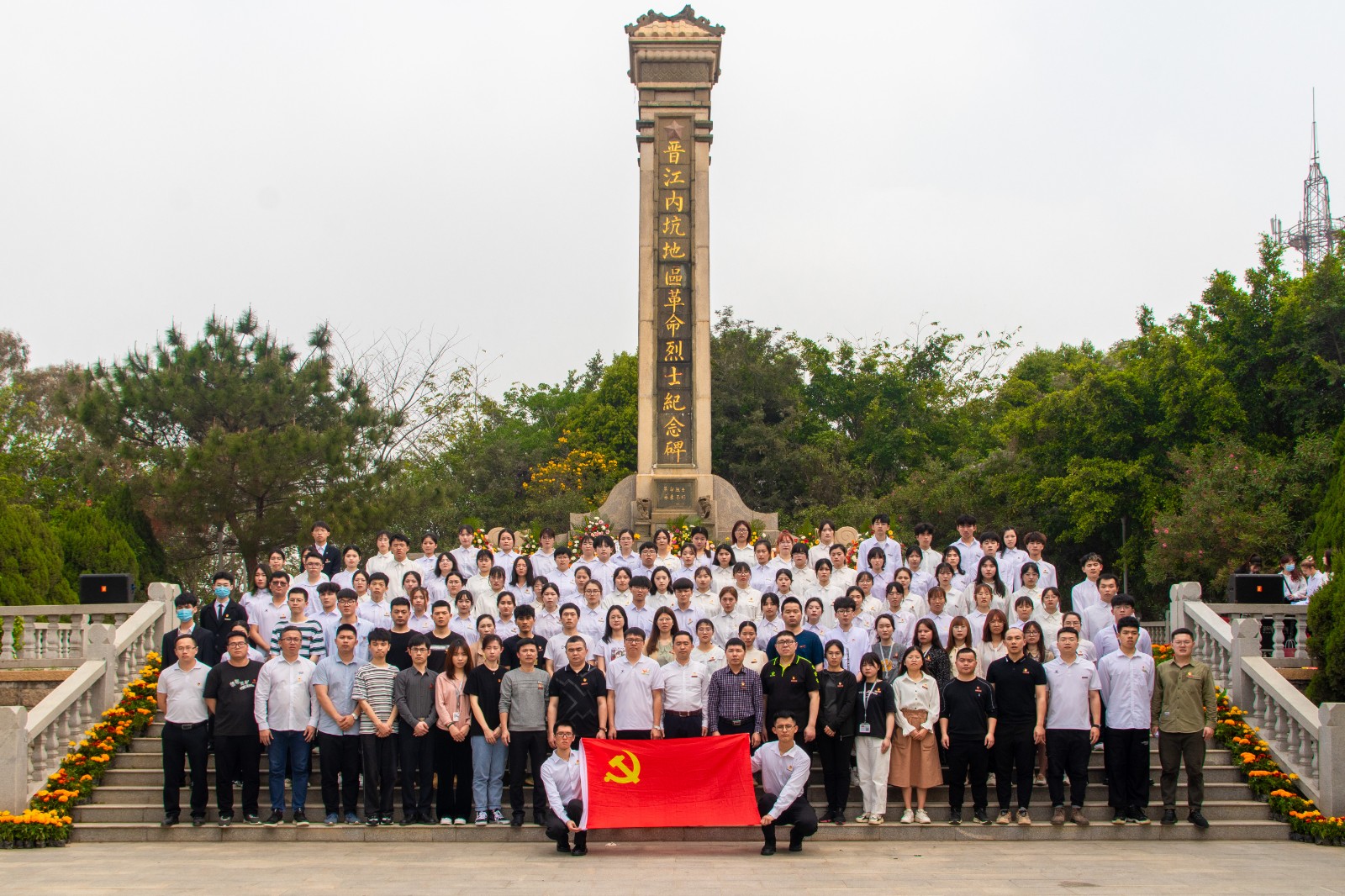 本次活动开始前,由校级组织和各书院组成的九十余名学生干部身着统一白色正装,列队行军至内坑镇五峰公园烈士陵园,缅怀革命烈士。引导广大团员青年坚定理想信念,继承和弘扬爱国主义精神。