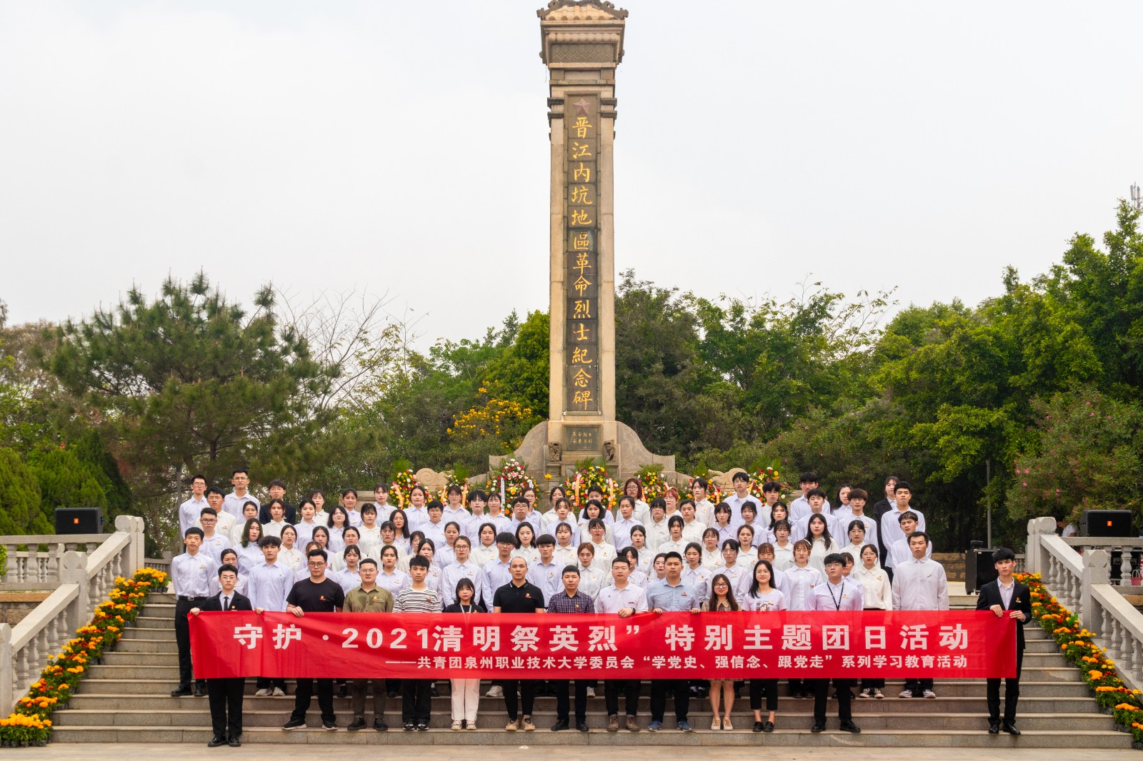 正值中国共产党成立100周年之际,为引导广大师生深入学习习近平总书记在党史学习教育动员大会上的重要讲话精神,教育引导广大师生继承和弘扬党的革命精神和光荣传统,我校将党史学习和革命教育活动相结合,4月2日上午,组织党员师生和团员代表前往晋江市内坑镇烈士陵园开展“缅怀先烈 颂党恩”党史教育暨校团委“守护·2021清明祭英烈”特别主题团日活动,助力当代青年学子传承红色基因、践行初心使命。