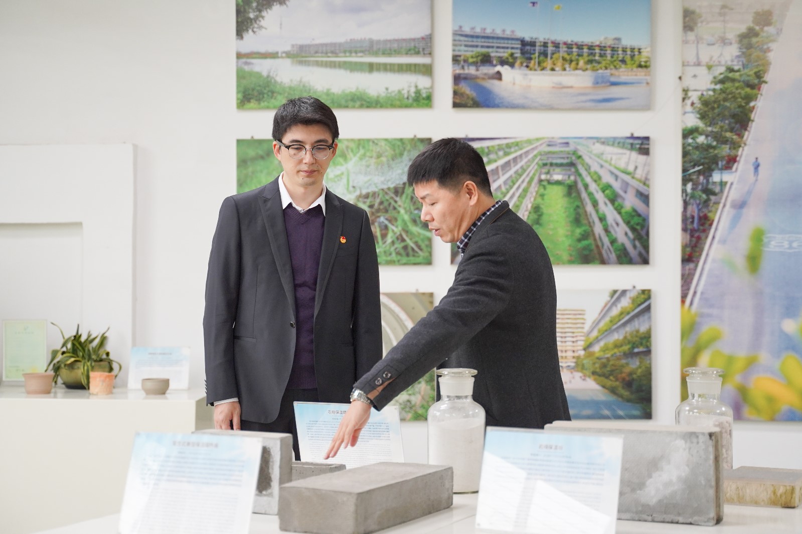 林明惠副部长一行考察了学校沙盘、校史馆、图书馆、数字媒体中心、绿色建筑展示中心、智能制造工程中心、艺术工坊等地。蔡金佩副校长详细讲解了校园规划、校情校史、产教融合、团学改革等方面的情况。
