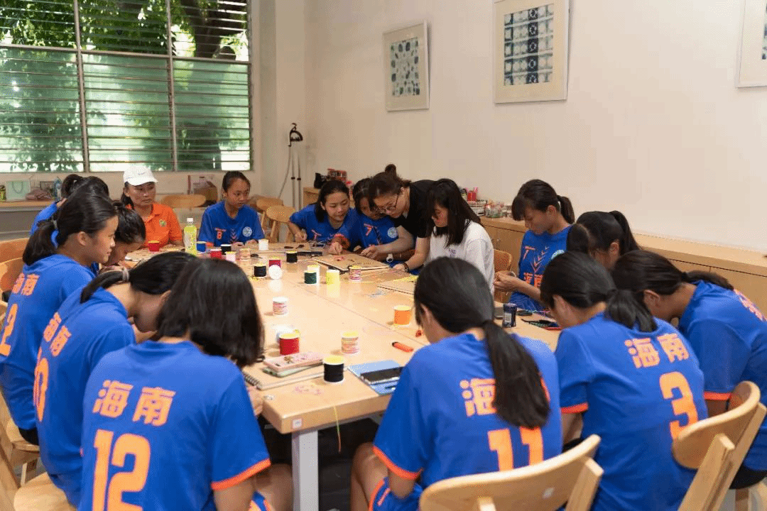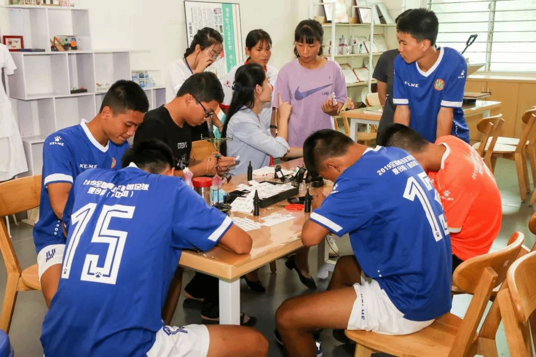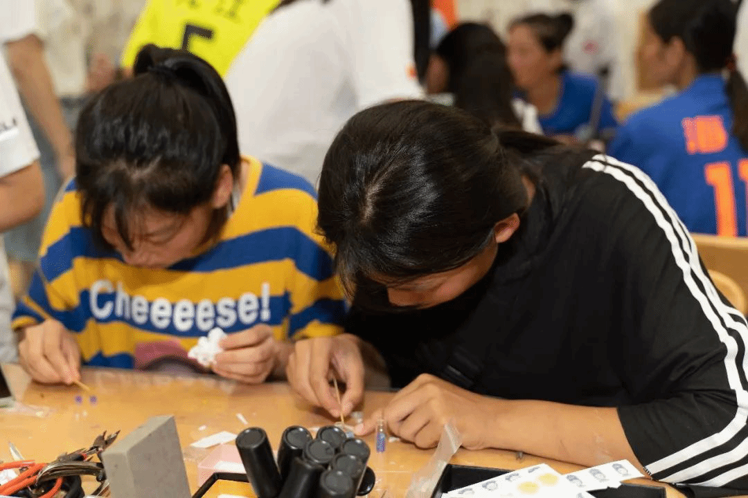 自制足球徽章和精美的小饰品,这是文创工坊带给我们的特殊体验,球员们都积极地投入制作当中,期待着能做出那个独一无二的纪念品。