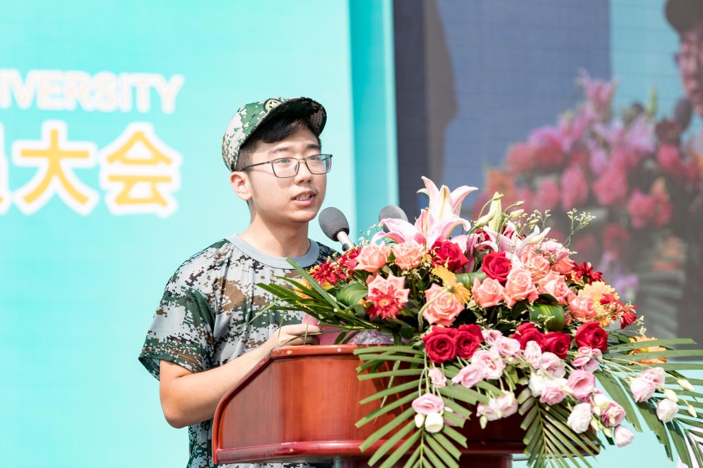 来自文化旅游与体育学院学前教育本科三班的兰丹妮同学代表2019级新生发言,号召大家在接下来的大学生活里,需要学会独立、需要调整好心态、需要合理支配时间、做好生涯规划,希望大家携手并肩,一路追梦,不负这美好的新时代。同时祝愿所有的嘉宾、领导老师身体健康、工作顺利。