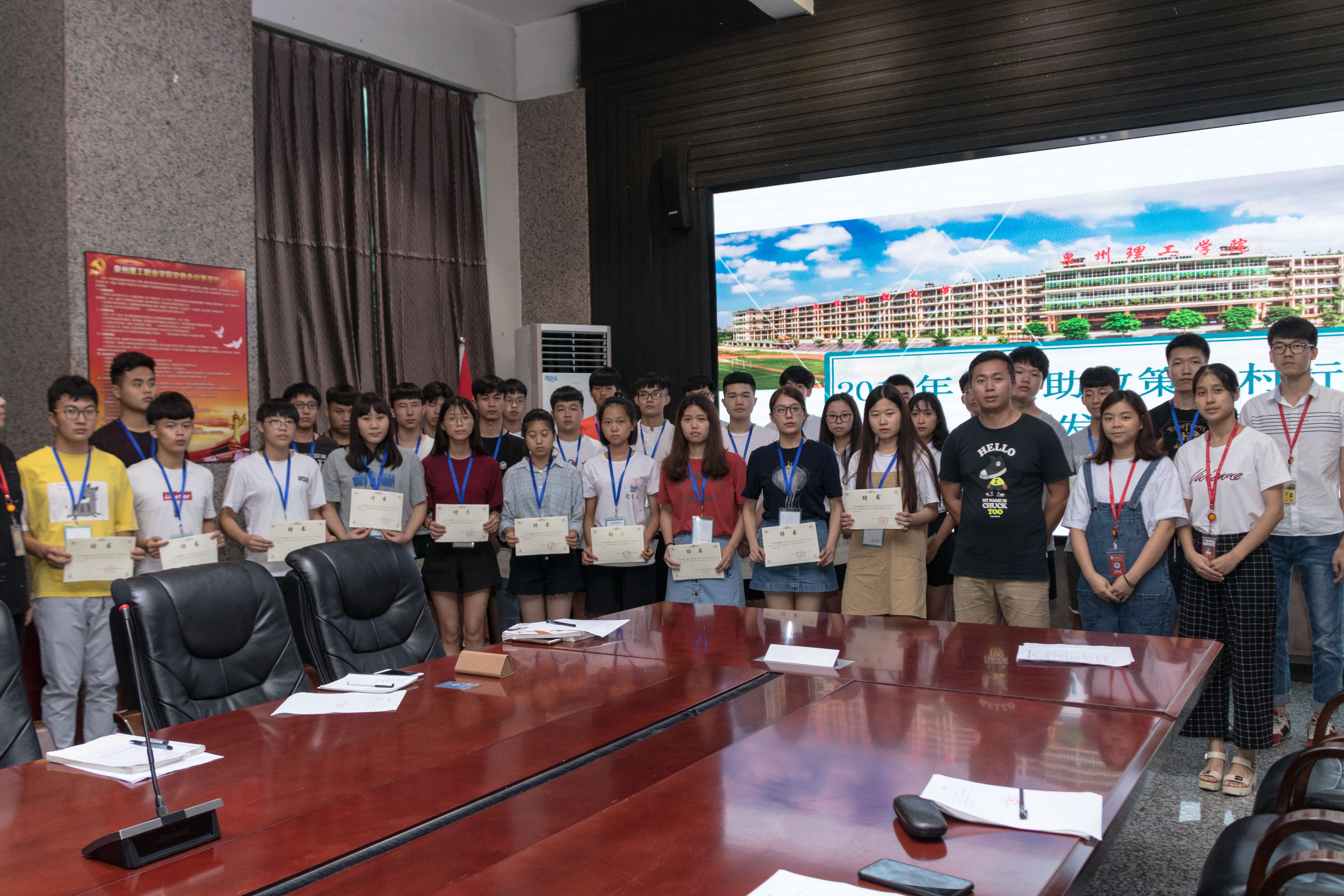 最后对进行参与培训的宣传员及精准家访小组组员进行资助政策知识的考核,对通过本次考试的人员颁发培训证书,并聘任“资助宣传大使”,聘期一年。