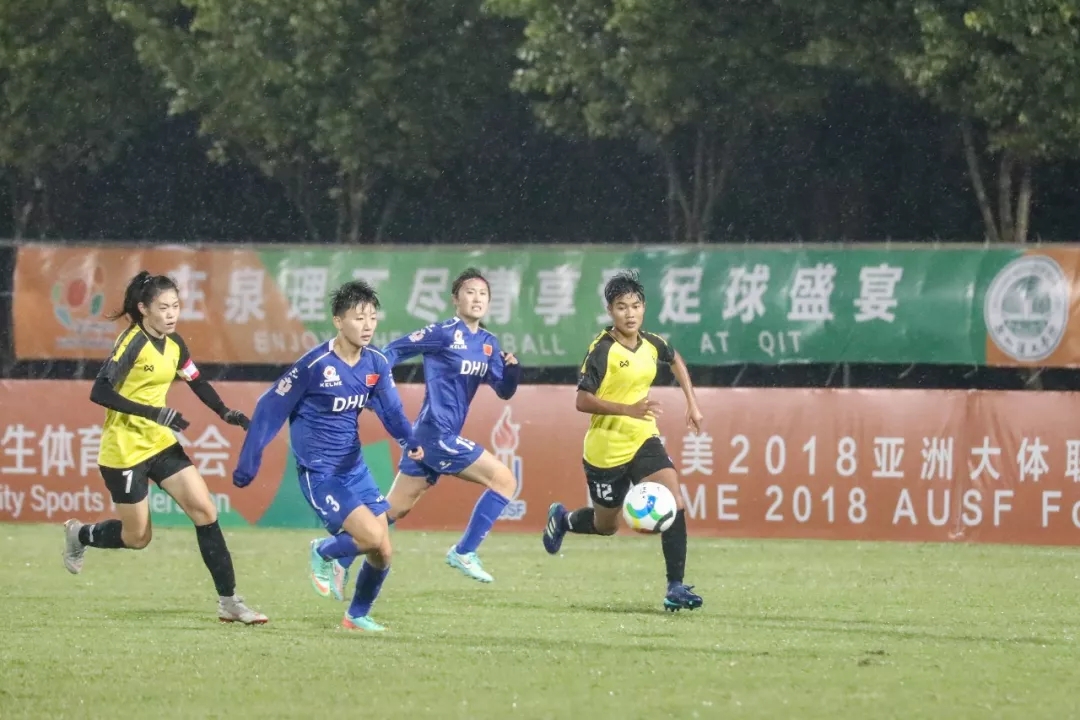 11月1日晚,2018亚洲大体联足球亚洲杯女子组小组赛首日,东华大学队(中国)对阵亚洲学者大学队(泰国)的比赛在泉州理工学院足球场进行。