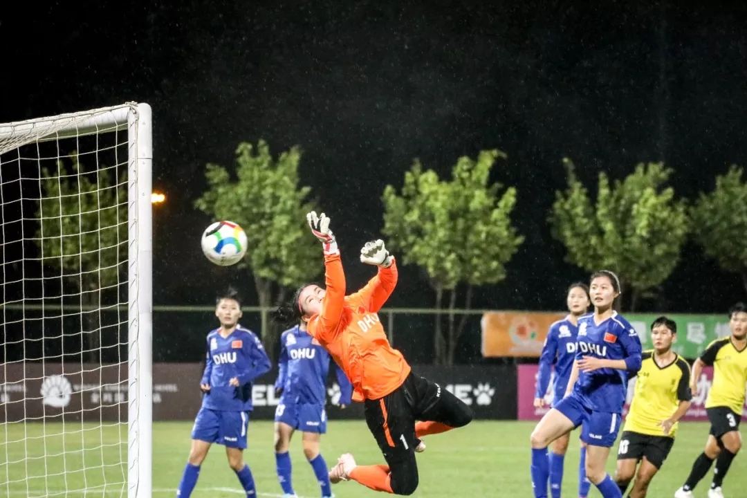 东华大学队1号门将路梦珂扑出对手射门,本场比赛路梦珂多次将皮球挡在门外