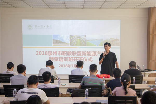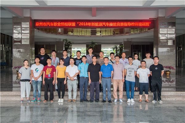 为进一步提高联盟成员单位新能源汽车技术专业教师的技能竞赛指导水平,提升指导教师综合实践教学能力,由泉州市汽车职业院校联盟主办,我校承办的“2018年新能源汽车技能竞赛指导老师培训”于2018年7月6号上午9点在我校第二会议室举行开班仪式。本次培训邀请了担任省赛、国赛裁判以及指导新能源汽车技能竞赛获得全国一等奖的优秀指导老师,对联盟单位将近30名学员进行培训。培训包括省赛、国赛的解读、新能源汽车基础理论以及实操模拟竞赛等。本次培训为期两天,理论实操交替培训。具体培训安排如下: