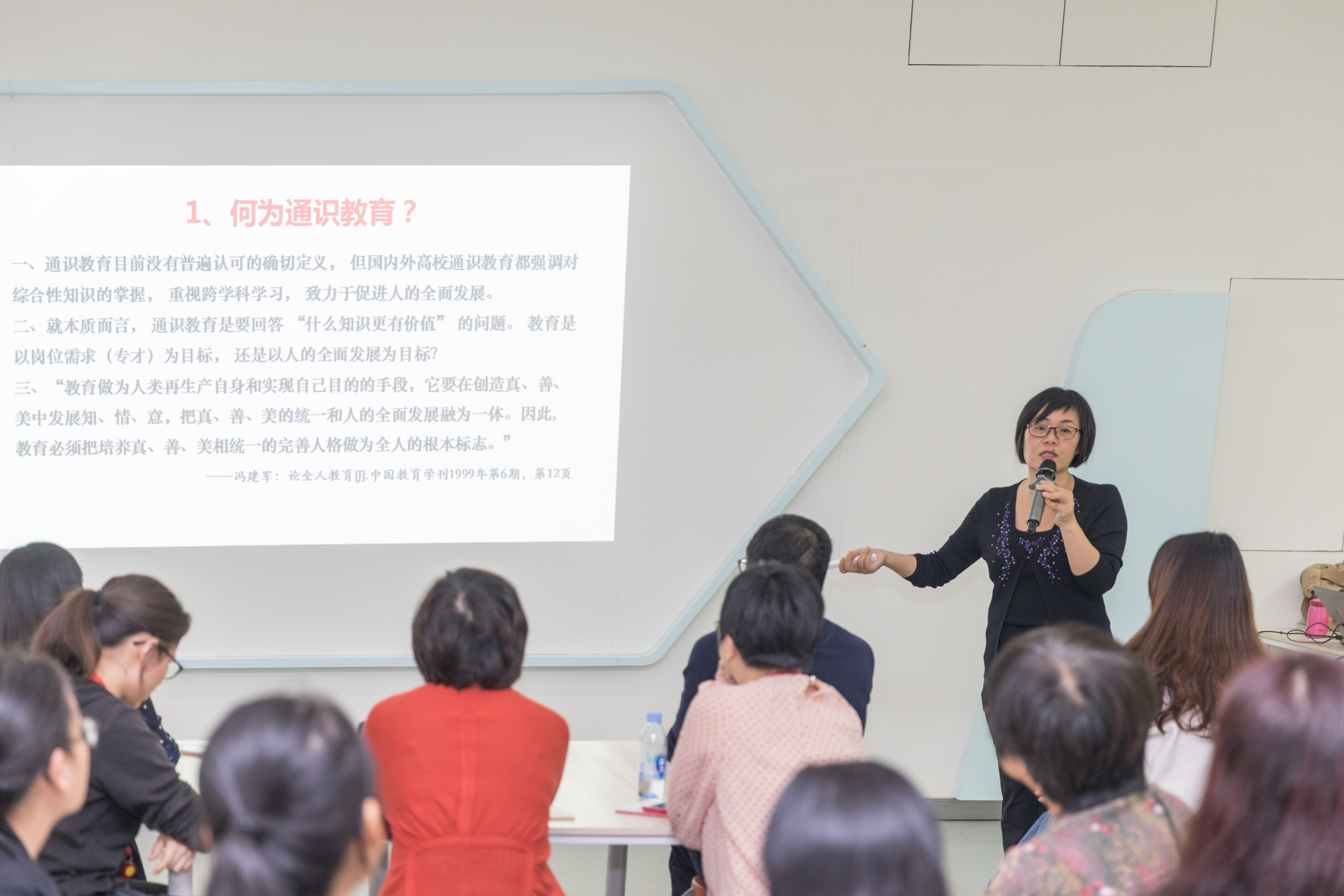 紧接着,郑宏老师就这本次课堂示范,为在座的30位教师做了一场主题为《点燃学生对真善美的向往——通识教育课程设计》的讲座,她先后从四个方面来讲授,分别是1.课程理念,要互相真实,教师要分享真实的经历和感受,而且要讲出情怀,而学生要对老师反馈真实感受;2.课程内容,要能正确引导学生面对自己与身边的现实问题,发动师生一起收集和阅读并朗读经典诗作;3.课程原则,要符合3个Open原则,打开思想、打开眼界、打开嘴巴;4.课程形式,要通过师生互动,进行分享,实现师生双主体。分享的过程中,郑宏老师将理论介绍和案例剖析巧妙结合,加上风趣幽默的语言、深入浅出的讲解让不同专业的老师们都学有所得。