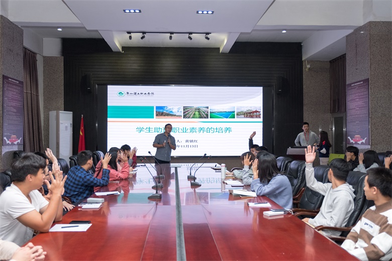 11月13日晚,学工处副处长罗敏首先就学生助理在工作过程中应具备的礼仪礼节及岗位基本知识做了介绍。她从“礼仪是一个人内外兼修的表现、礼仪代表一个人的学识和修养”切入,介绍了职场中必须具备的职业形象、社交礼仪、商务礼仪等知识;讲到岗位认知,罗老师抛出“你了解你的岗位吗?学生助理到底能做什么?”两个话题,引发学生助理思考并现场交流互通,她要求学生助理要做到角色定位、思想到位、状态在位、学习整位4个“位”。随后,党务工作部副部长黄镇红结合多年工作经历,通过分享职场工作案例,介绍职场中应具备团队意识,要有学习能力,要善于沟通,才能提高工作效率,强调学生助理要明确“要什么、学什么、会什么、做什么”才能在这个平台上锻炼成长。