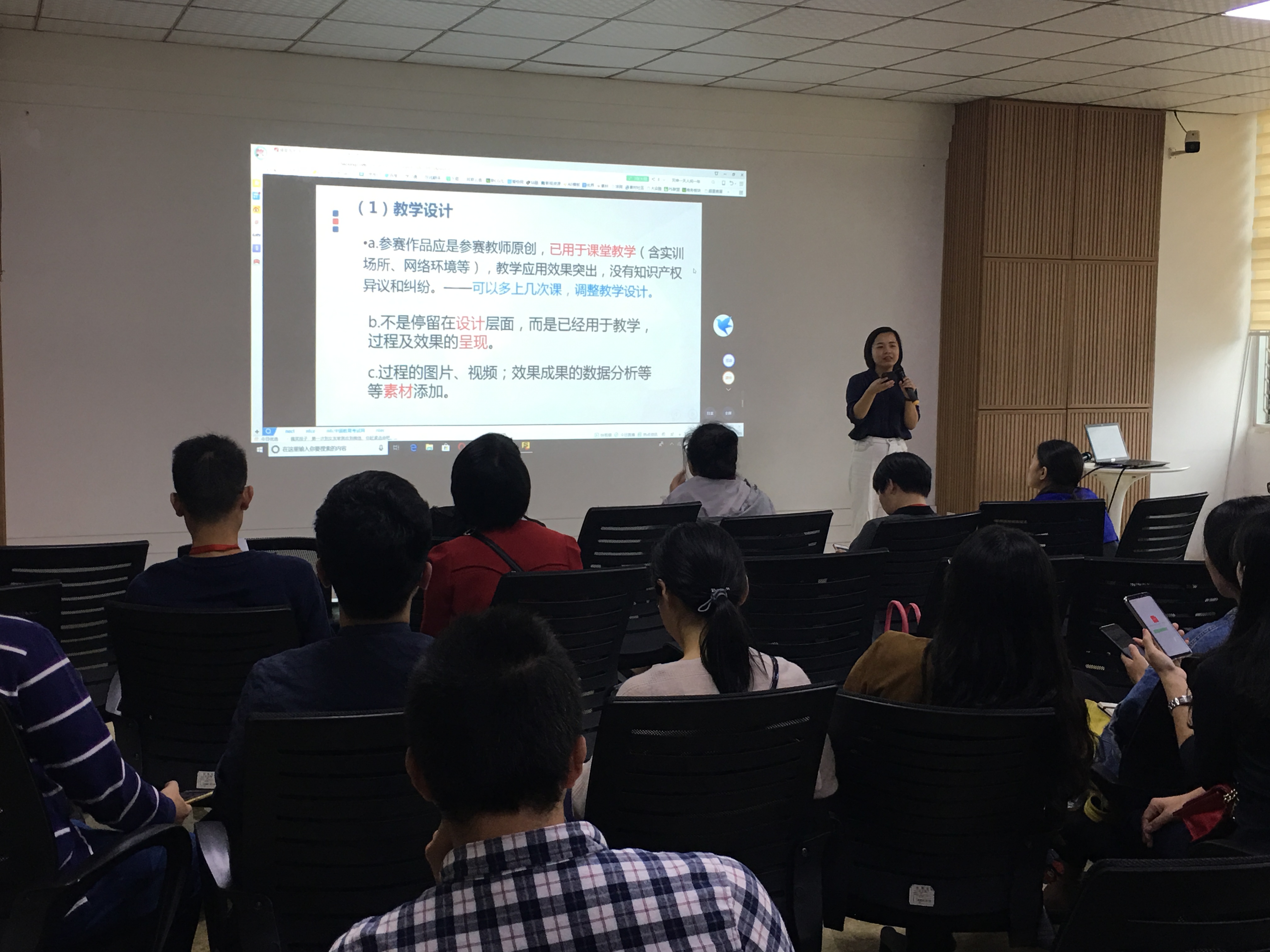 最后教务处周燕妮老师表示老师们可以利用学校超星“泛雅”平台、天天录课进行录制,鼓励老师们积极参加校级信息化教学比赛和第二届移动教学大赛,在提升自身教学水平的同时做教学研究,提炼成果,积极申报教学改革项目及课题,提升科研能力。