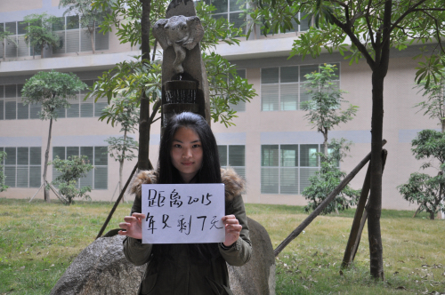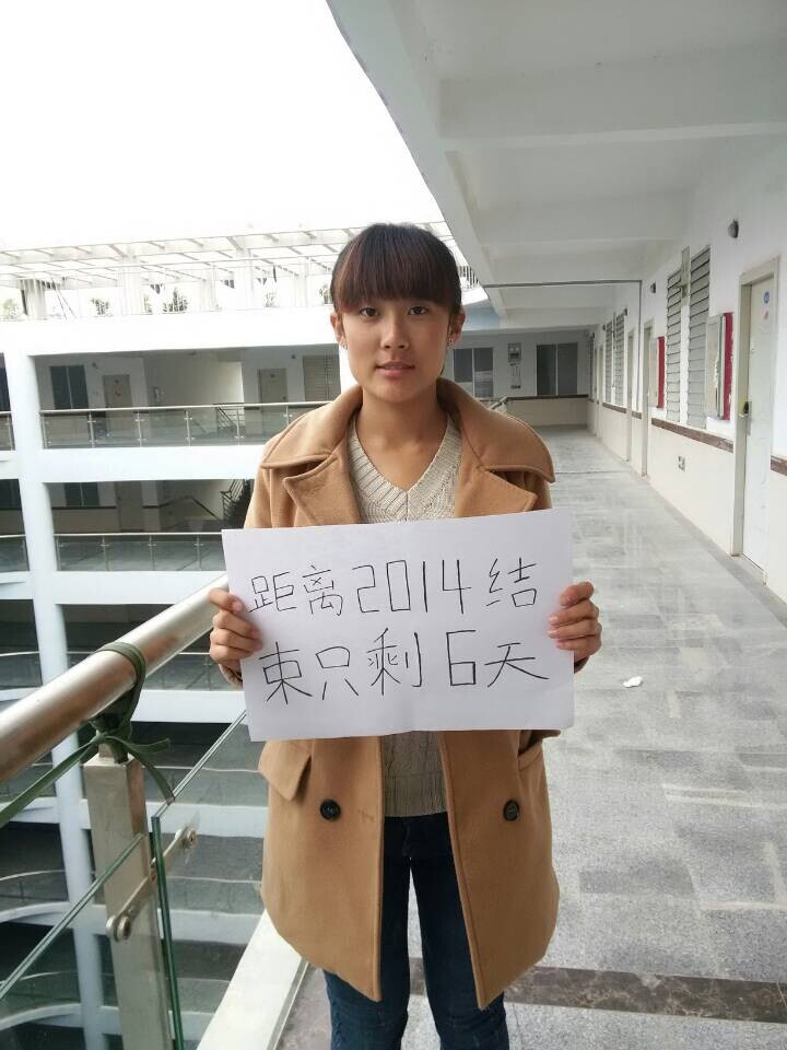 我叫周碧莲,是大学生记者团新闻部部长。每个人的生命就像一场电影,或悲或喜。但既然人生的幕布已经拉开,我们就该积极的演出。命运不会因为你的悲惨而怜悯你,所以我们必须像向日葵一样温暖、阳光,成为自己人生的导演。在距离2015年仅剩5天的时间里,我们紧抓2014的尾巴,把在这一年想去做,但没做的事情完成吧。让我们以全新的自己迎接2015的到来。
