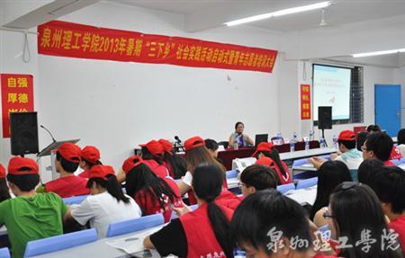 11日晚7点,由校团委举办的“实践激扬青春志 奋斗成就中国梦”泉州理工学院2013年暑期“三下乡”社会实践活动启动仪式暨青年志愿者培训大会在
