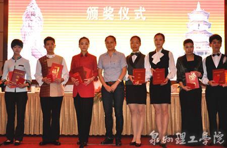 10月25日—26日,2012年泉州市旅游饭店服务技能大赛在石狮市爱乐皇冠假日酒店举行。泉州理工学院商贸系酒店管理专业10级蔡兴文和阙美英同学分别斩获中餐宴会摆台项目第一、二名。二人被授予“泉州市技术能手”称号,且将代表泉州市出征省赛。