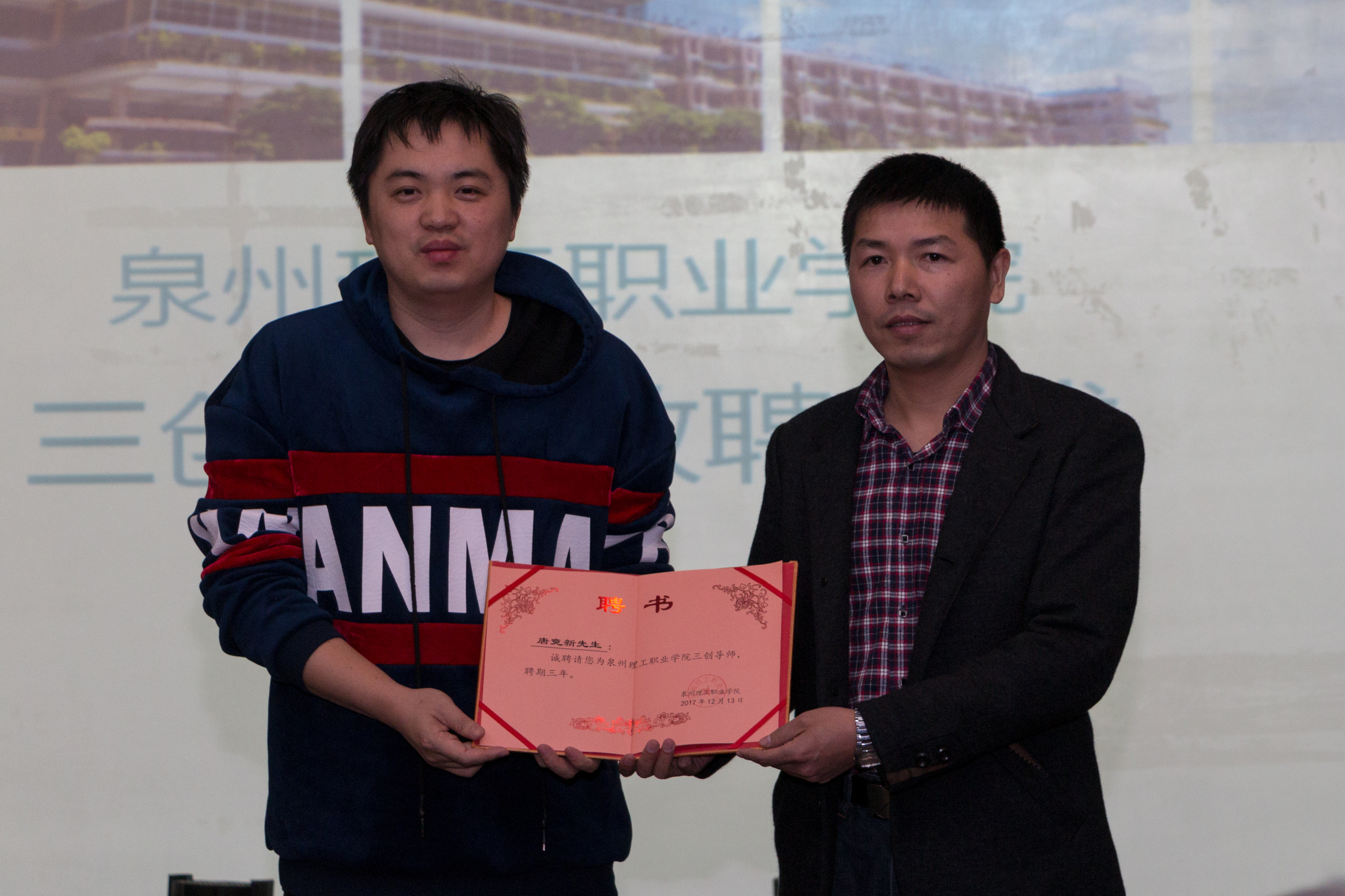 活动由唐嘉彦老师主持,他简要介绍了活动的主题及意义。校长助理蔡金佩老师致辞,他表示:学校历年来重视三创活动的开展,同时对唐竞新先生的到来表示诚挚的欢迎和衷心的感谢。随后,举行三创导师敦聘仪式,校长助理蔡金佩为唐竞新先生颁发聘书。