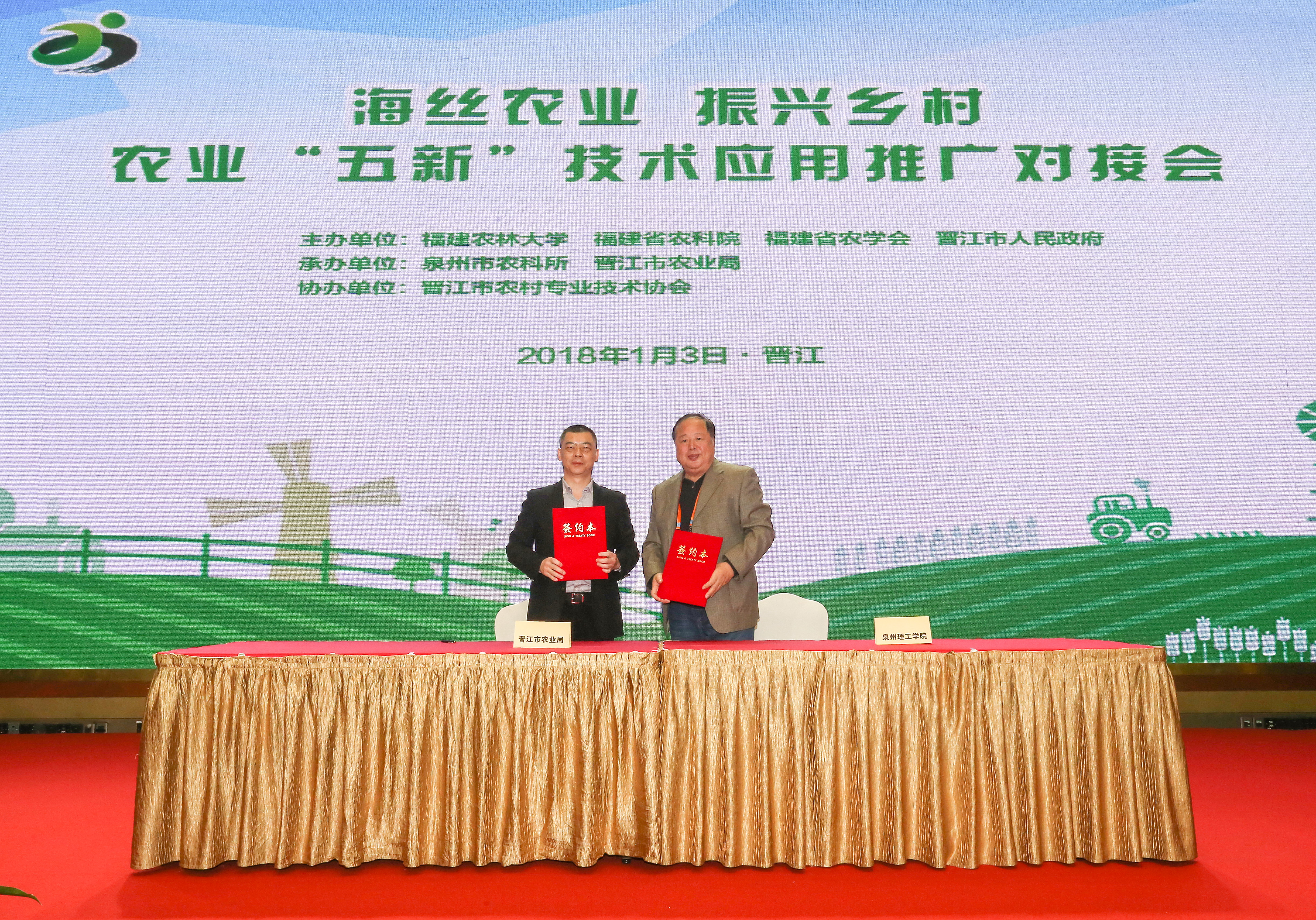 会上,我校校长臧树良代表学校与晋江市农业局签署战略合作协议。双方将加深生态文明建设、农业现代化建设、美丽乡村建设等领域合作充分发挥各自优势,开展社会调研、新技术开发、科学研究、人力培训、学历提升及技能鉴定等项目