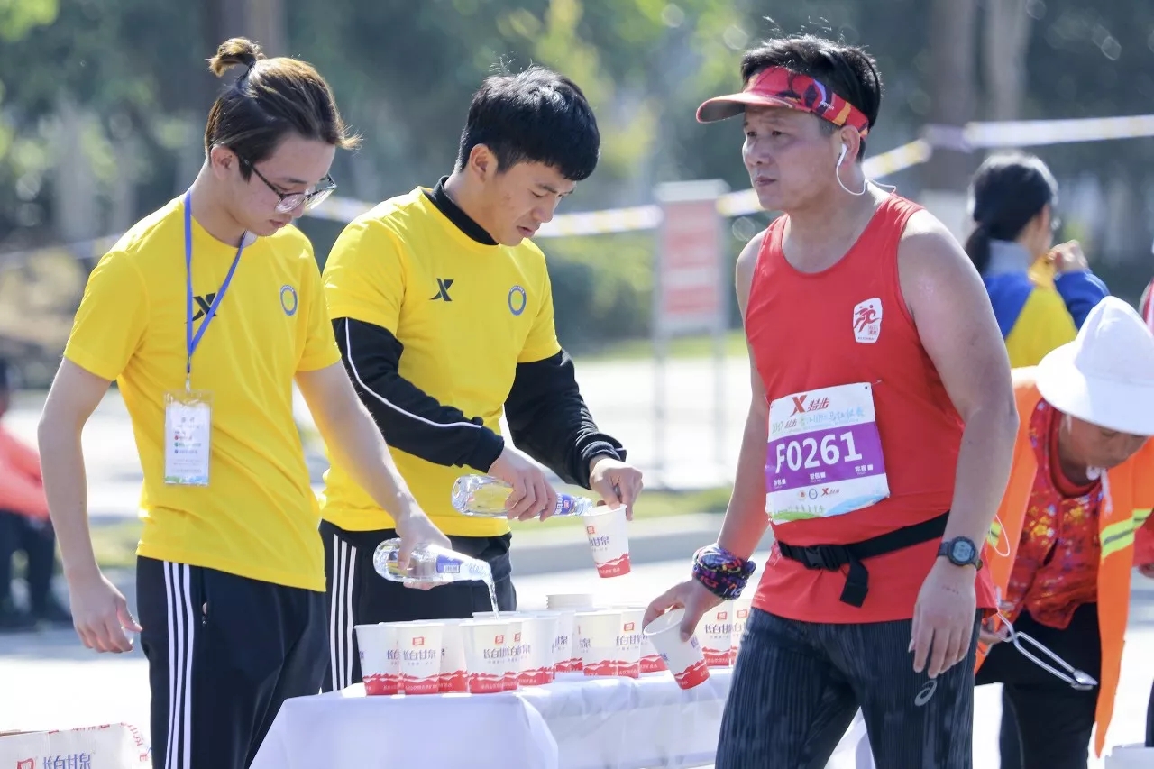 “嘿!那不是张基智吗?加油!加油!”远远的,黄炎鑫就见到了学长张基智,他高兴地喊了起来,给学长加油打气。张基智还特地跑到他的补给点上取了补给。