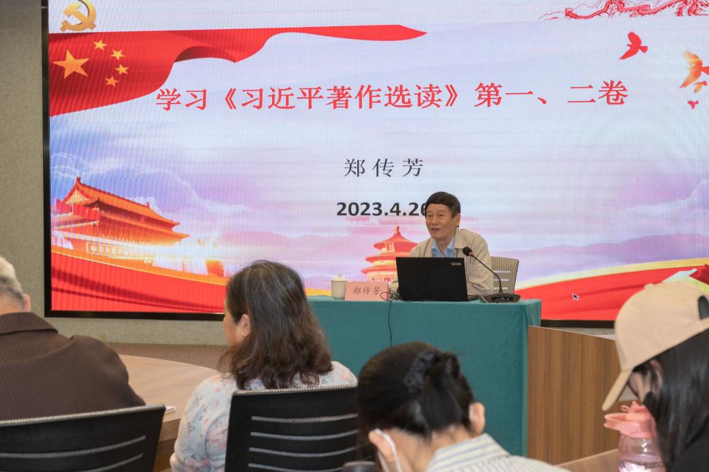 开班式后,郑传芳教授作《学习<习近平著作选读>第一、二卷》专题辅导报告。他从学习《习近平著作选读》是党的思想建设和理论武装的一项重要工作和宝贵经验、著作选读的主要特点、《习近平著作选读》第一、二卷的主要内容、学习《习近平著作选读》应坚持的科学态度和方法四个方面对《习近平著作选读》进行了系统解读,引用丰富材料阐述了其中的重要理论和生动实践。