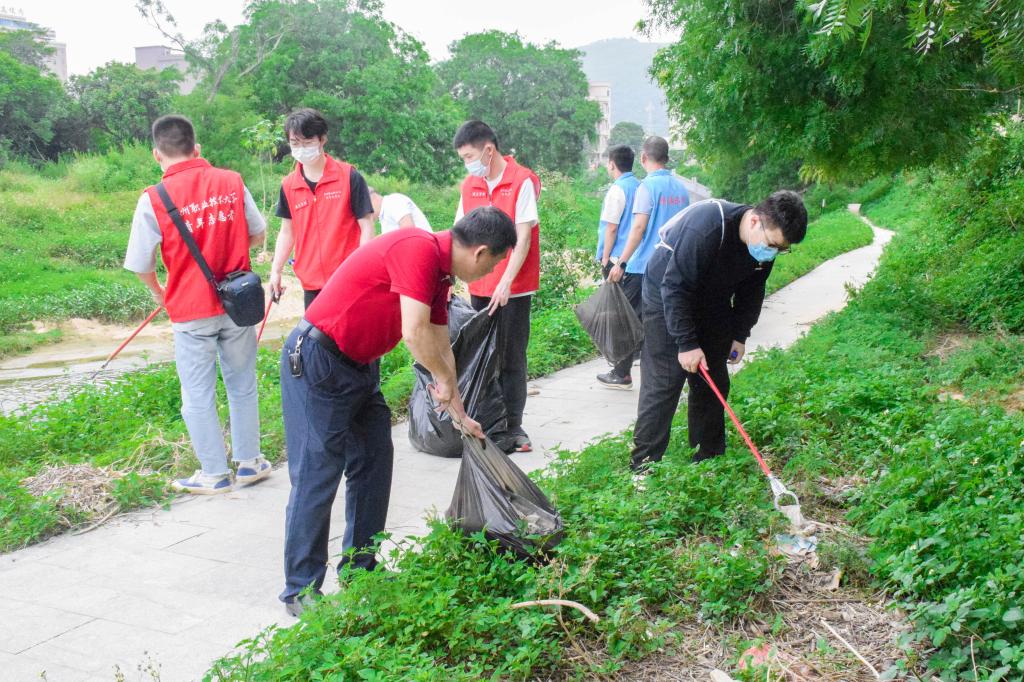 活动现场,志愿者们身穿志愿马甲,带着工具,互相配合,对河边的垃圾进行全面清理。有的拿钳子、有的拿垃圾袋,认真清理岸边的瓶盖、烟头、废弃塑料袋等垃圾杂物。经过近一个半小时的共同努力下,河滩焕然一新,随后志愿者们将劳动“成果”一一收集后放入垃圾桶内,维护了河道周围的清洁。