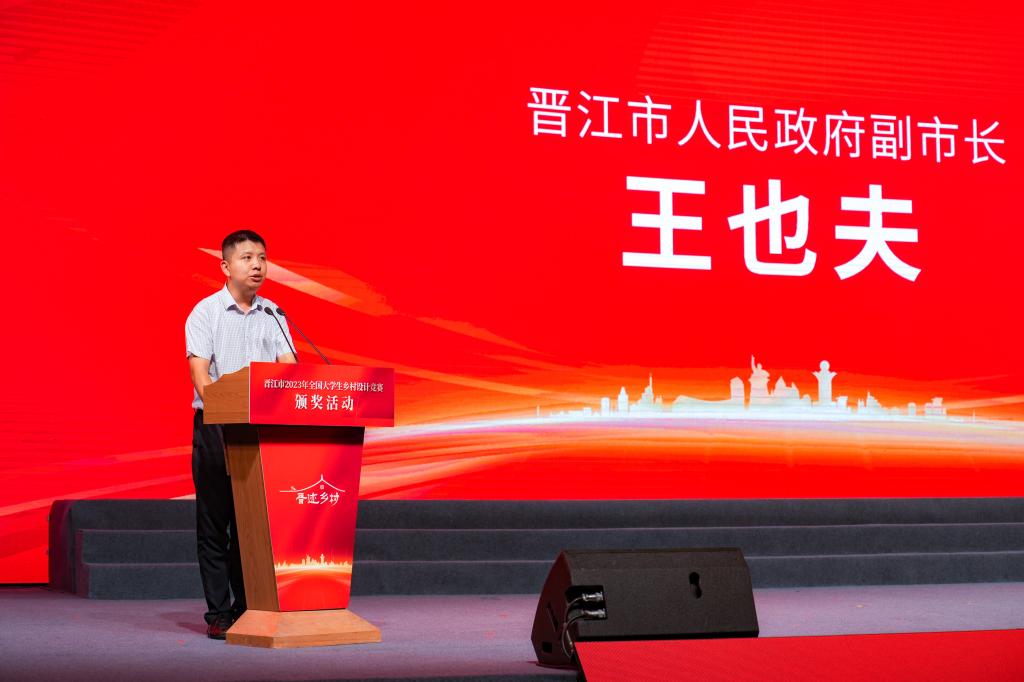 受泉州市委常委、晋江市委书记张文贤和晋江市市长王明元委托,晋江市副市长王也夫在致辞中表示,希望广大参赛者能够把比赛中激发出来的热情和专业能力,带回学校、带回家乡,积极投身于乡村振兴事业。期盼更多热爱乡村、有梦想、有情怀的人加入到这个行列中,共同为晋江美丽乡村建设贡献智慧和力量,共同谱写乡村振兴的晋江新篇章。
