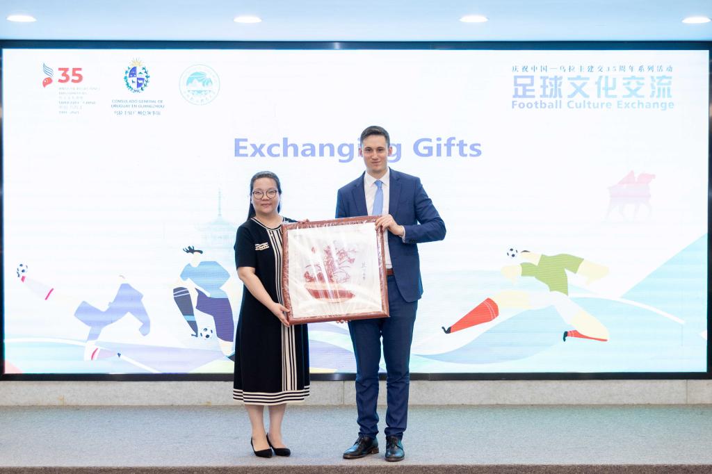 ❖ 吴滨如代表泉州职业技术大学、Facundo Simon代表乌拉圭驻广州总领事馆互赠礼物