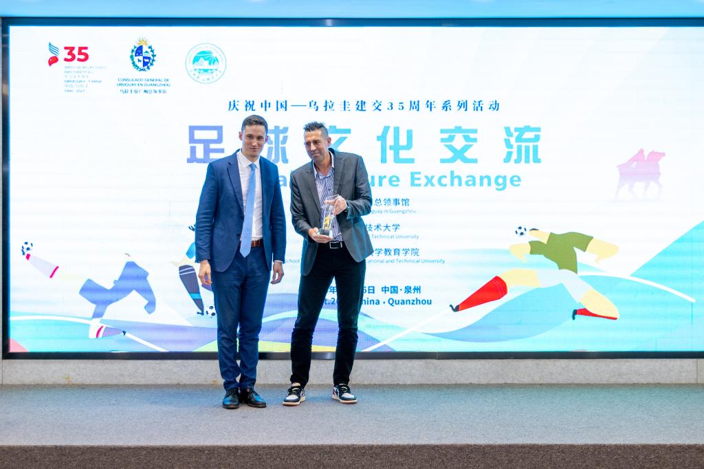 ❖ 代总领事Facundo Simon授予乌拉圭足球教练Leonardo Jara纪念牌