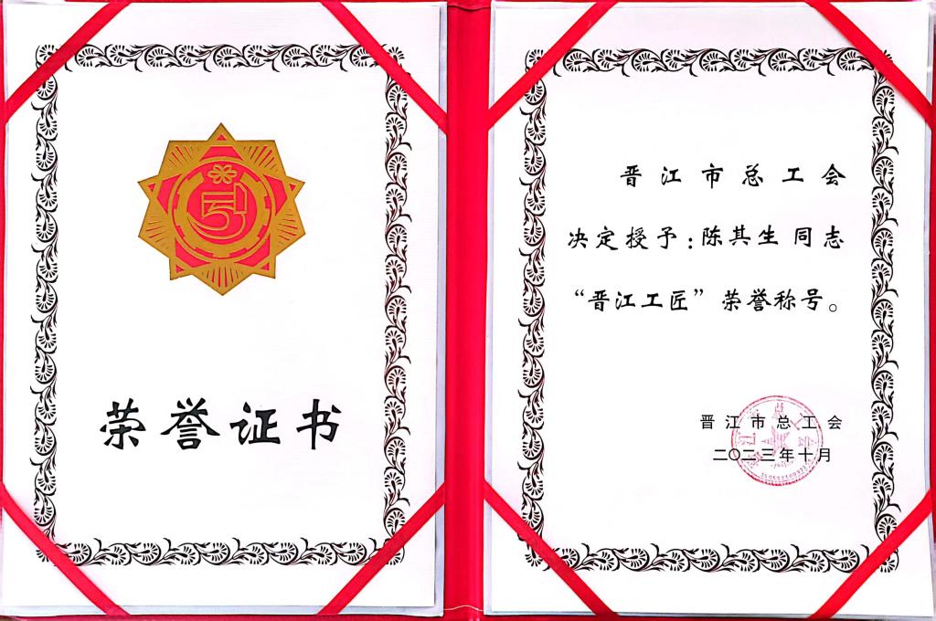 为配套首届晋江“人才日”系列活动,深化产业工人队伍建设改革,发挥好劳模工匠示范引领作用,11月3日上午,晋江市总工会隆重召开了表彰大会。会上,晋江市表彰了2022年度“名师带高徒”活动中产生的33名“泉州市好师傅”、67名“晋江好师傅”;在职工职业技能竞赛中,30名职工荣获“晋江市五一劳动奖章”,20名职工荣获2023年“晋江工匠”年度人物。中营汽车学院院长陈其生入选2023年“晋江工匠”年度人物并荣获晋江市五一劳动奖章。