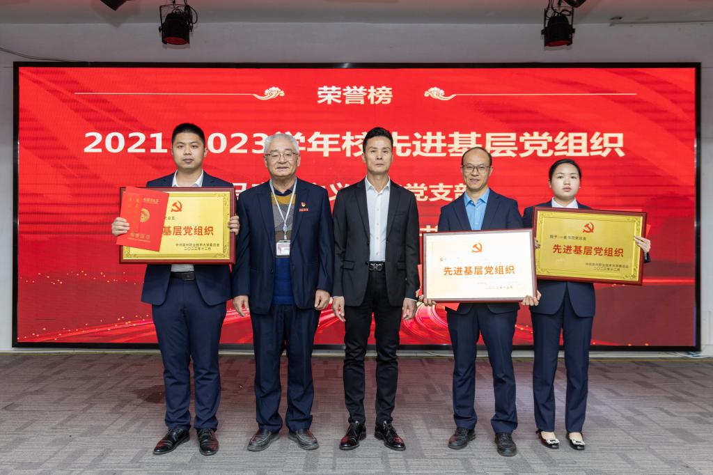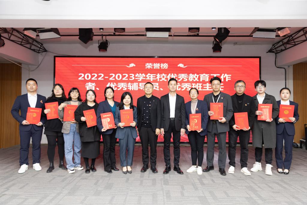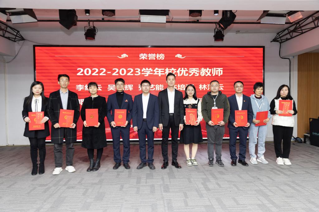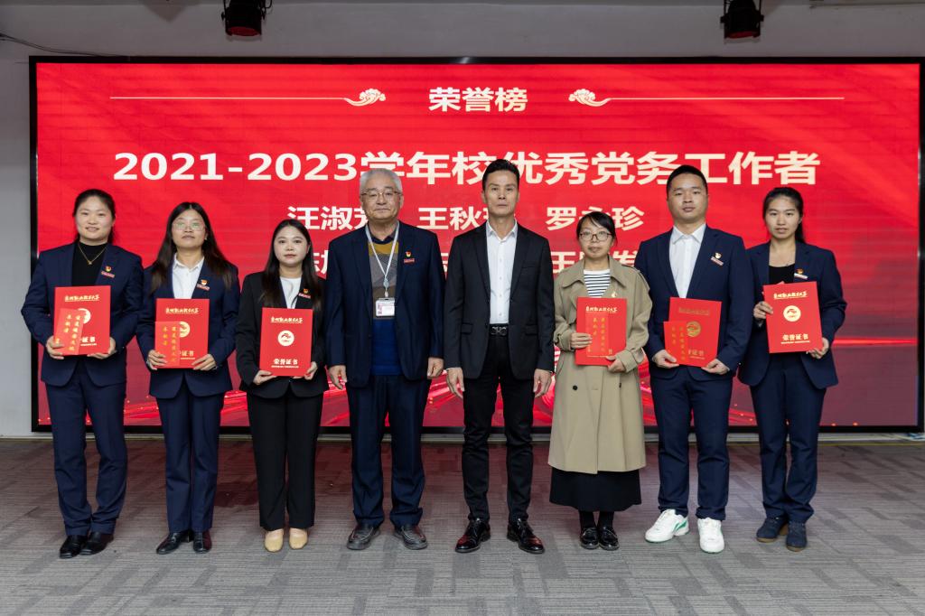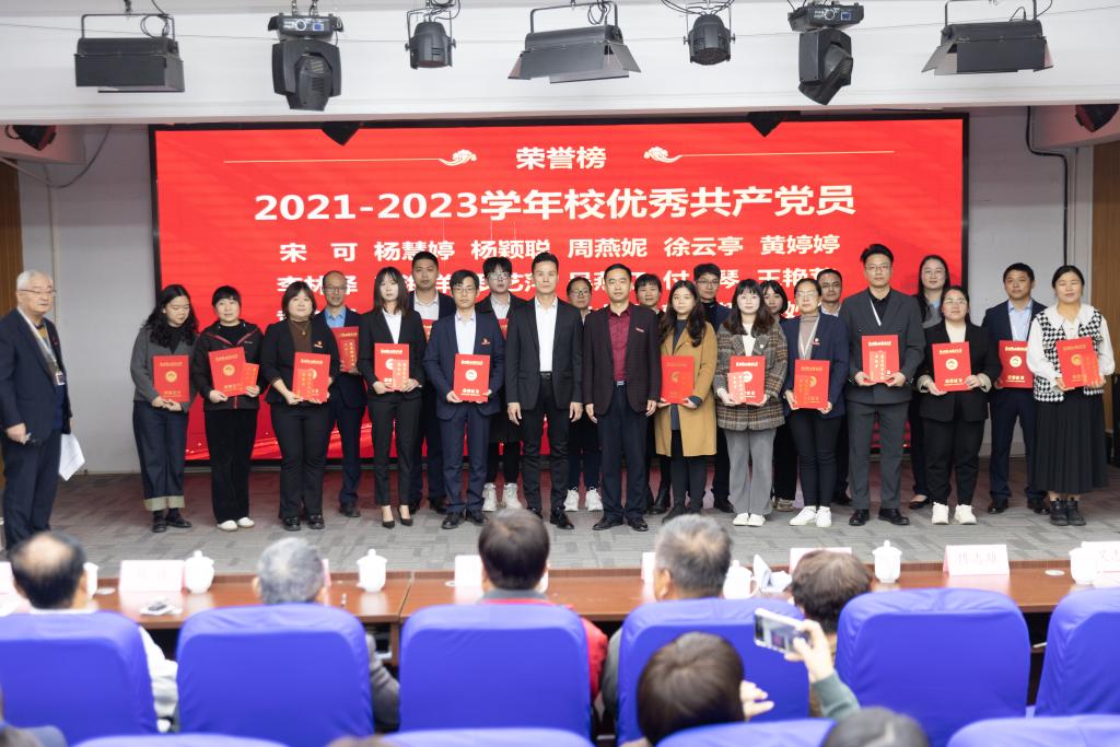 ▲ 党委书记傅志雄为2023年获省市表彰的教职工代表颁奖