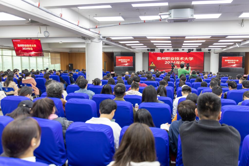 吴滨如校长作《泉州职业技术大学2023年工作报告》,从“影响力”“产业伙伴型大学2.0阶段”“夯实办学条件 练好内功”“薪资改革方案基本原则”四个方面,回顾总结学校2023年工作的重大进展,并展望2024年。这一年,教育部、中央社会工作部、福建省、泉州市、晋江市等各级领导莅校调研,关心指导学校发展建设;学校得到政府的重视和信任,承载了多个项目平台,并在一些重要场合做典型发言。学校自2013年提出建设“产业伙伴型大学”的目标,历经10年,随着牵头申报全国首批市域产教联合体、携手华为为泉州提前谋划数字技能人才培养生态等重大项目的布局,正式迈入2.0阶段。学校办学空间扩容、首届职业本科毕业生充分就业、招生创下新高、人才培养成效显著、师生技能竞赛获奖率大幅提升。这一连串闪亮的业绩正在点亮学校的未来!全体教职工齐心协力,立足各自岗位,奋勇拼搏,取得了可喜的成绩;学校开门办学形成良好态势,未来可期。