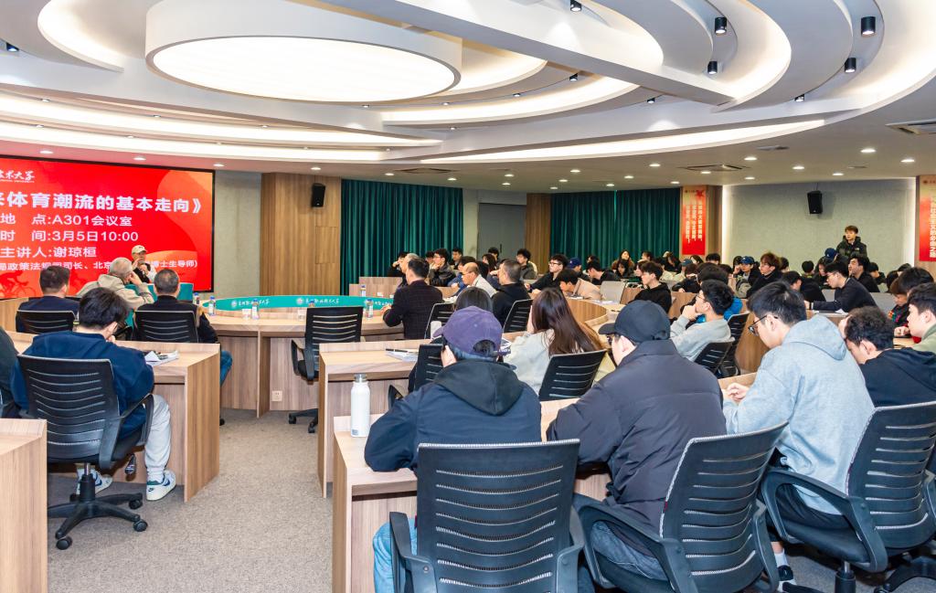 谢琼桓教授将其丰富的专业知识和人生经验结合起来,深入浅出,旁征博引,让同学们在一个个实例和故事中吸取经验。他指出要做大体育产业这块“蛋糕”,需要从体育产业视角来推动休闲体育的发展,必须站在不同的时代来审视休闲体育的发展,强调推动体育产业良性发展有利于为全民健身体育奠定良好基础。谢教授鼓励同学们在夯实基础上勇于创新,为建设“量力而行,尽力而为”的健康体育氛围,促进中国体育事业的蓬勃发展贡献力量。
