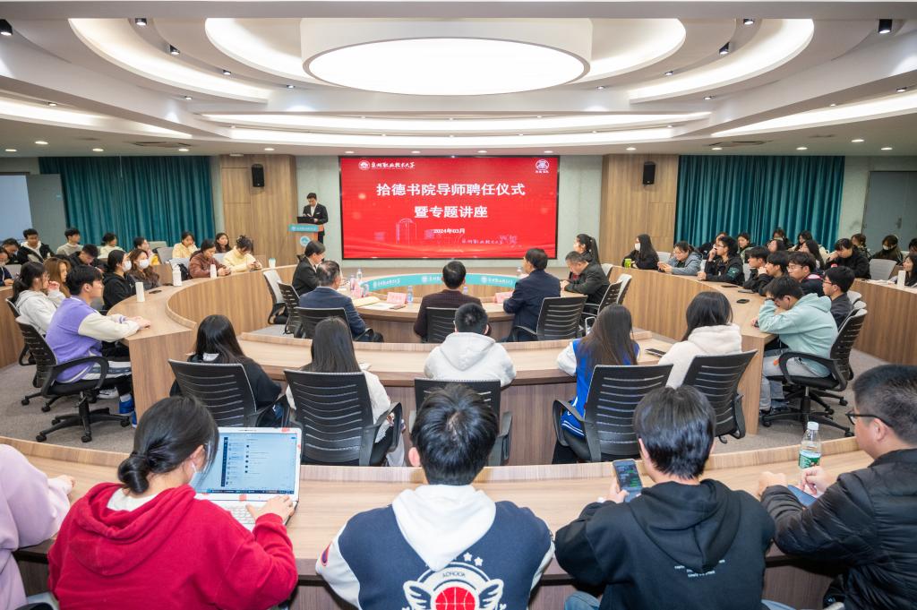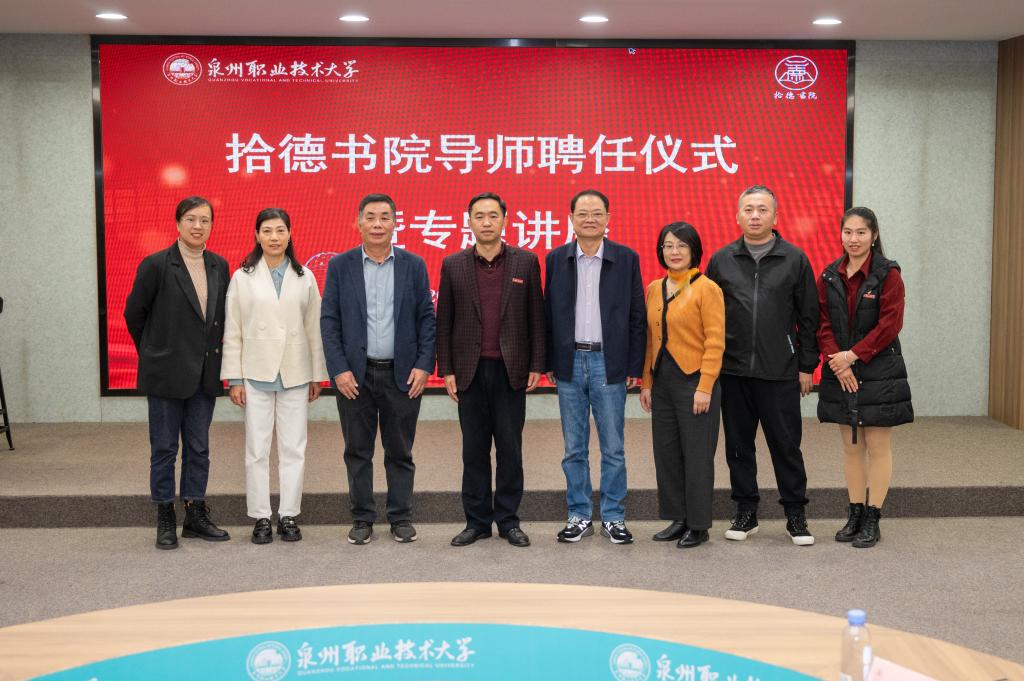 为深入学习贯彻习近平新时代中国特色社会主义思想,推动主题教育走深、走实,加强大学生思想政治教育工作,提高思政教育的质量和效果,3月14日下午,拾德书院举行思政导师聘任仪式暨专题讲座。漳州市东山县委党校原常务副校长、四级调研员、东山县文化发展研究会会长林喜禄,中共东山县委宣传部原副部长、文联主席、现任东山县老科协常务副会长李鸿耀,东山县委宣传部工会主席陈爱华,东山县文化发展研究会吴舜芳,学校党委书记傅志雄、党委组织部常务副部长黄镇红、图书档案馆副馆长郑春梅、拾德书院党总支书记王秋玲以及支部师生党员、入党积极分子、学生干部等参加。