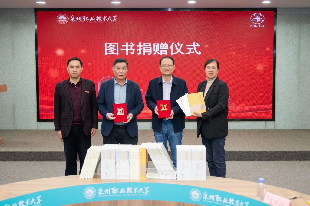 林喜禄老师和李鸿耀老师向我校图书档案馆捐赠图书13种共73册,傅志雄和郑春梅共同为他们颁发图书捐赠证书。