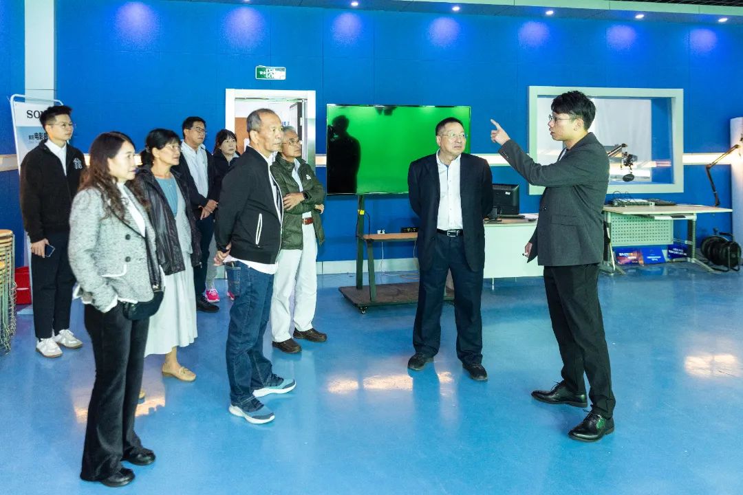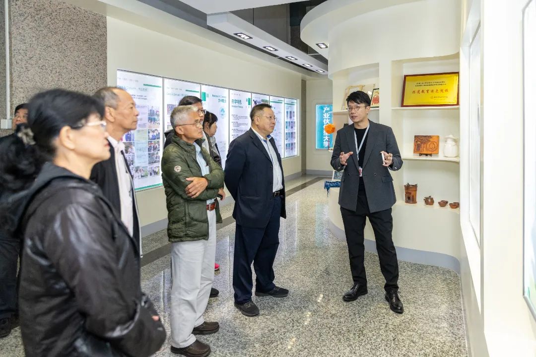 品牌传播部部长杨颖聪向访问团一行详细介绍建校历史、产教融合办学特点,并带领到访一行参观校史馆、各学院教学、实验区。
