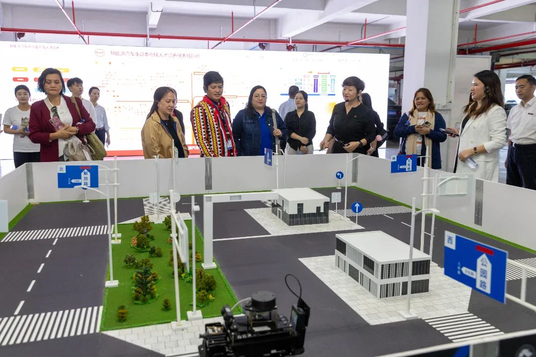 ▲ 维达尔·维利亚努埃瓦一行在新能源汽车产业学院考察调研