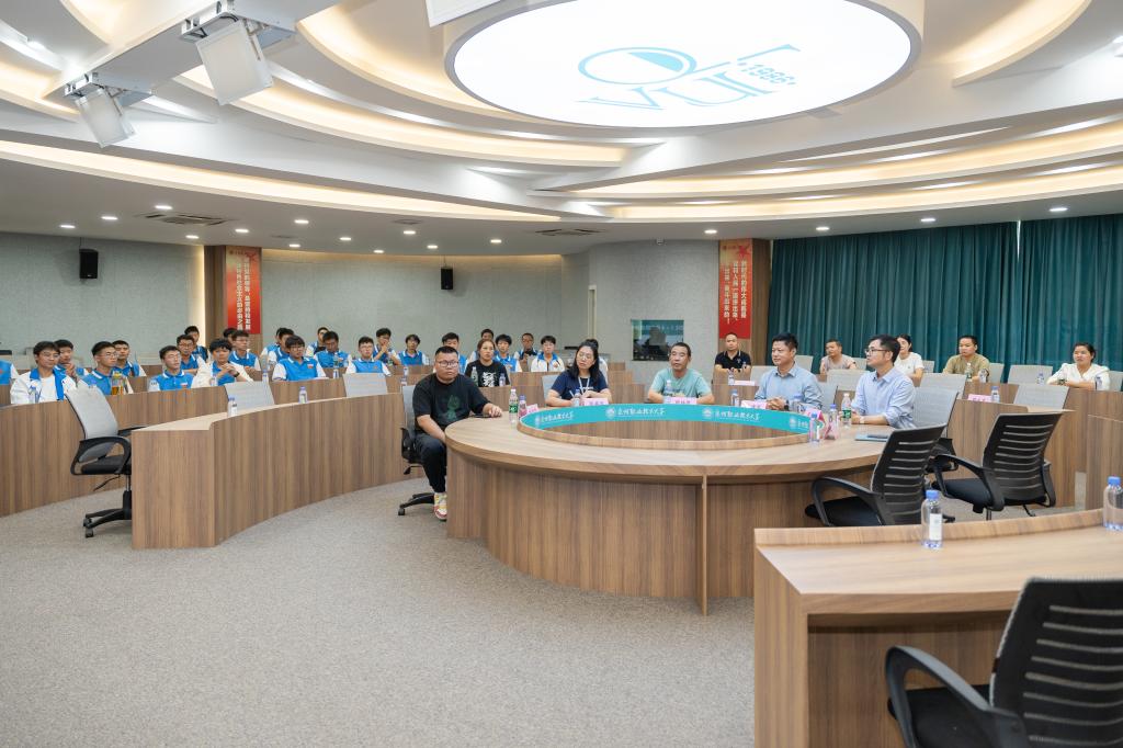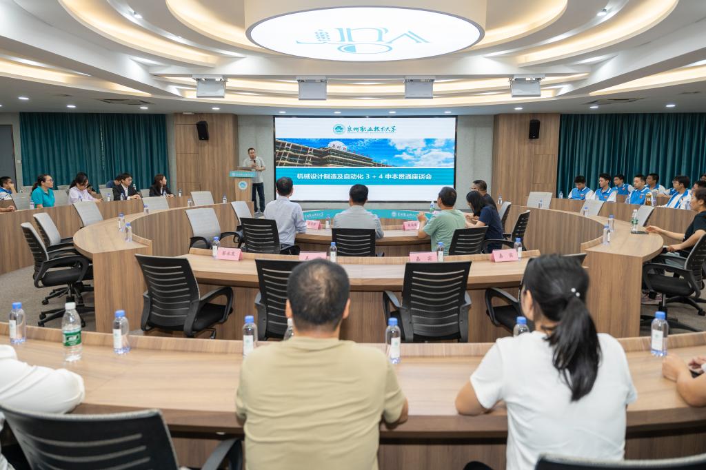 工学院为做好本次活动,提前做了细致安排,当天下午在A301国际会议室举行了交流会。参加交流会的领导和嘉宾有,晋江安海职业中专学校副校长翁天妙、招就办主任颜培德、智能制造部主任林伟强、24级机电本科班班主任蔡永发;泉州职业技术大学副校长张建军、教务处副处长周燕妮、工学院副院长蔡海毅及学院教师。